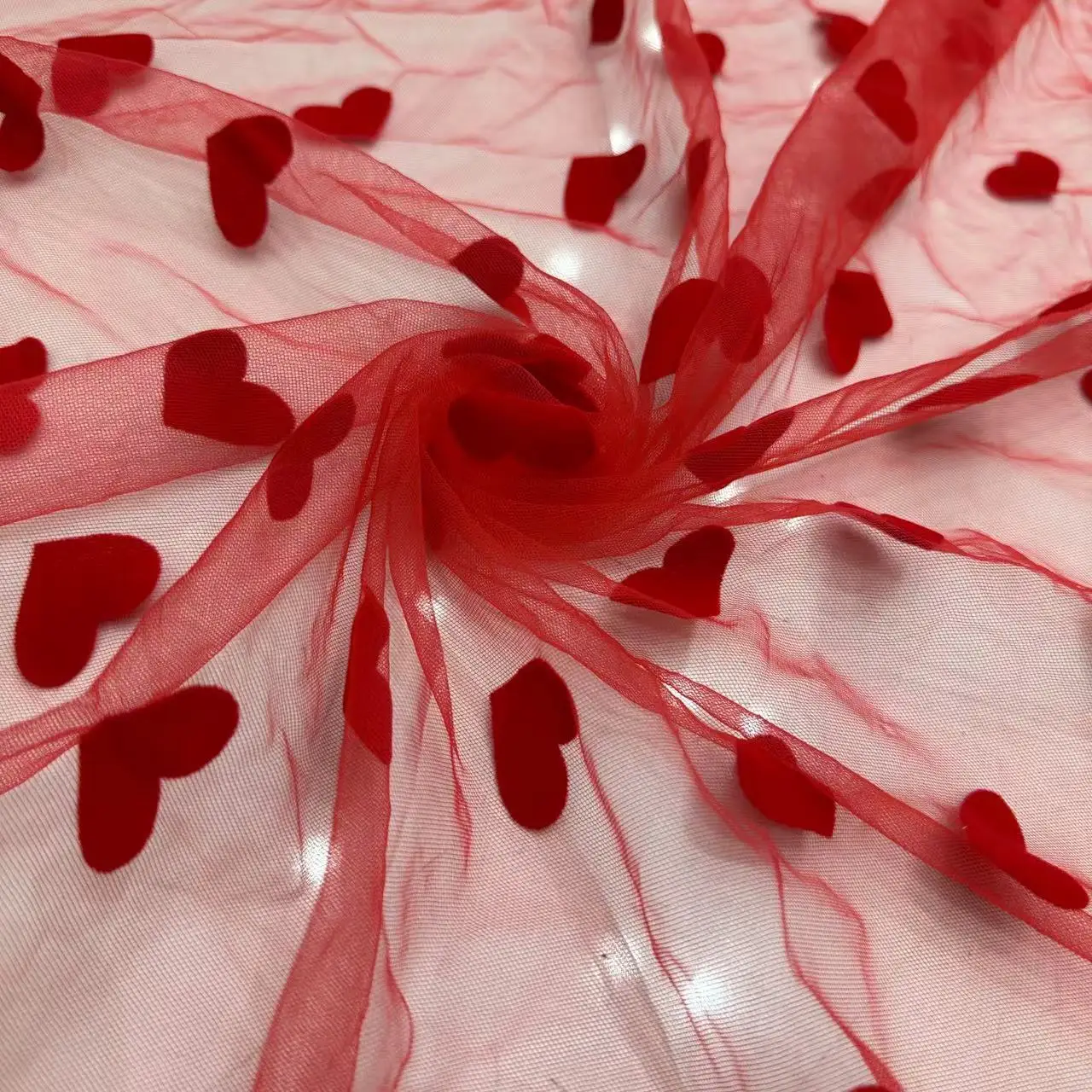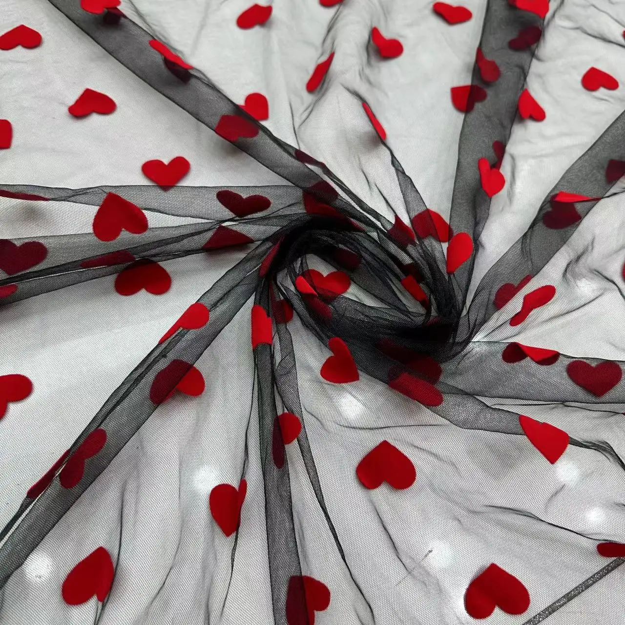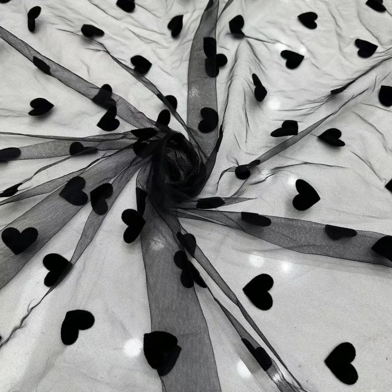 1.5m Wide Love Flocking Flower Mesh Fabric Lace Dress Dress Skirt Transparent Soft Gauze Skirt High-grade Skirt Lace Accessories