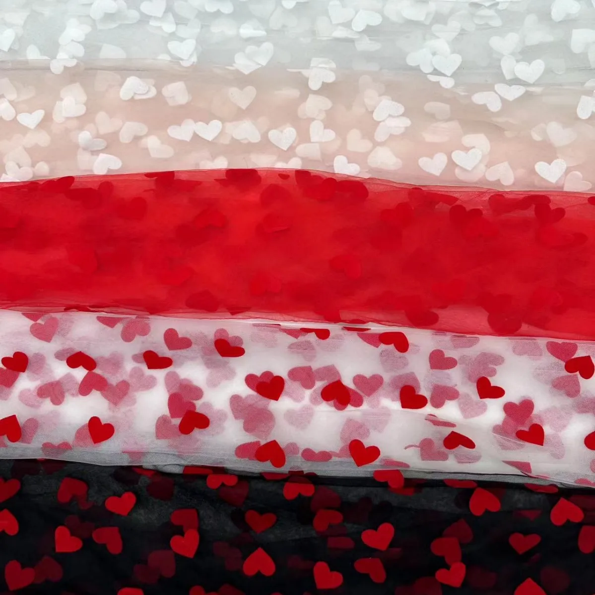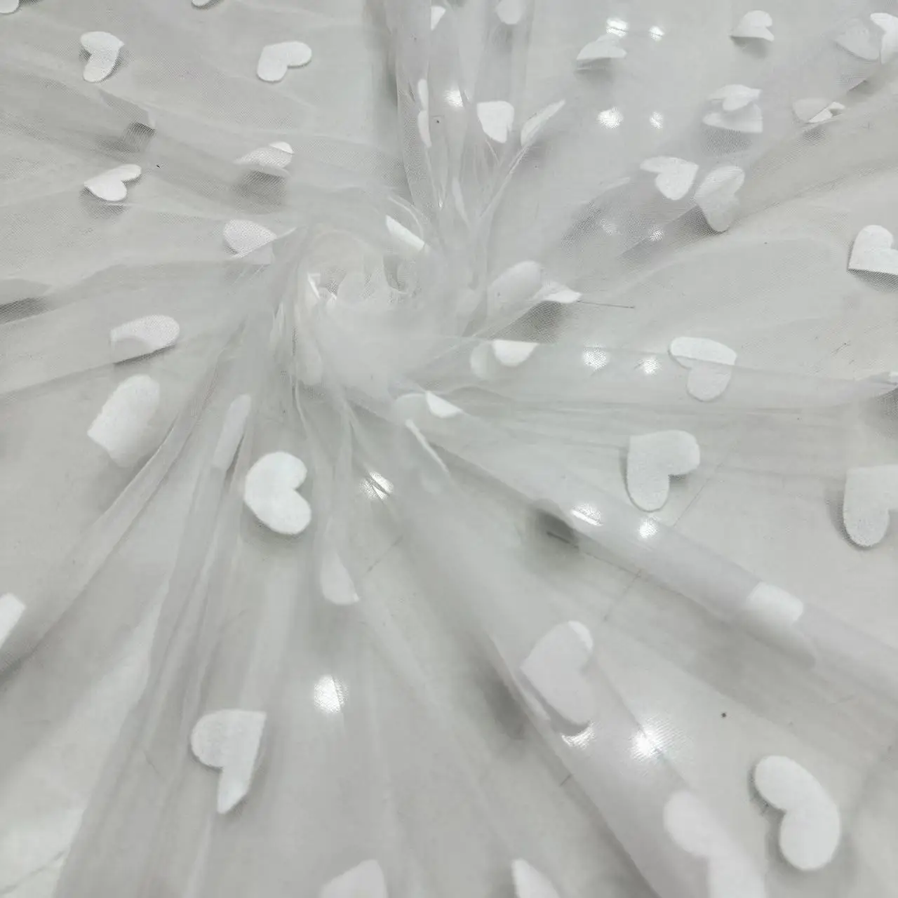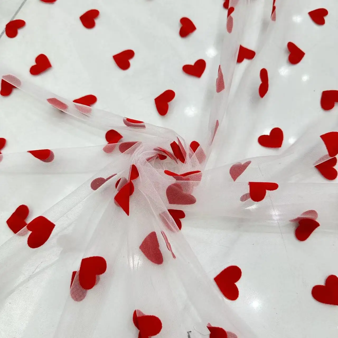 1.5m Wide Love Flocking Flower Mesh Fabric Lace Dress Dress Skirt Transparent Soft Gauze Skirt High-grade Skirt Lace Accessories