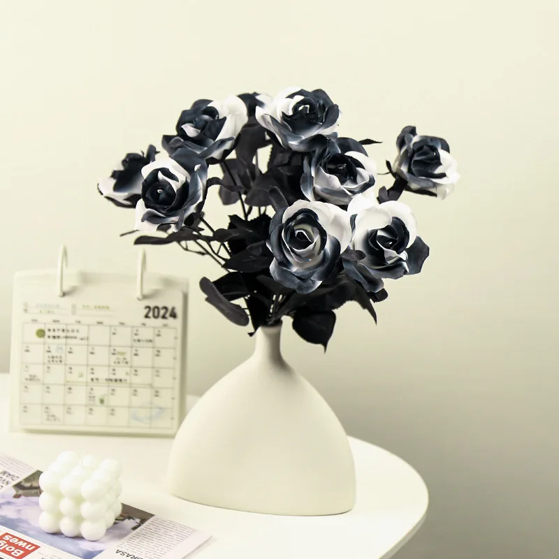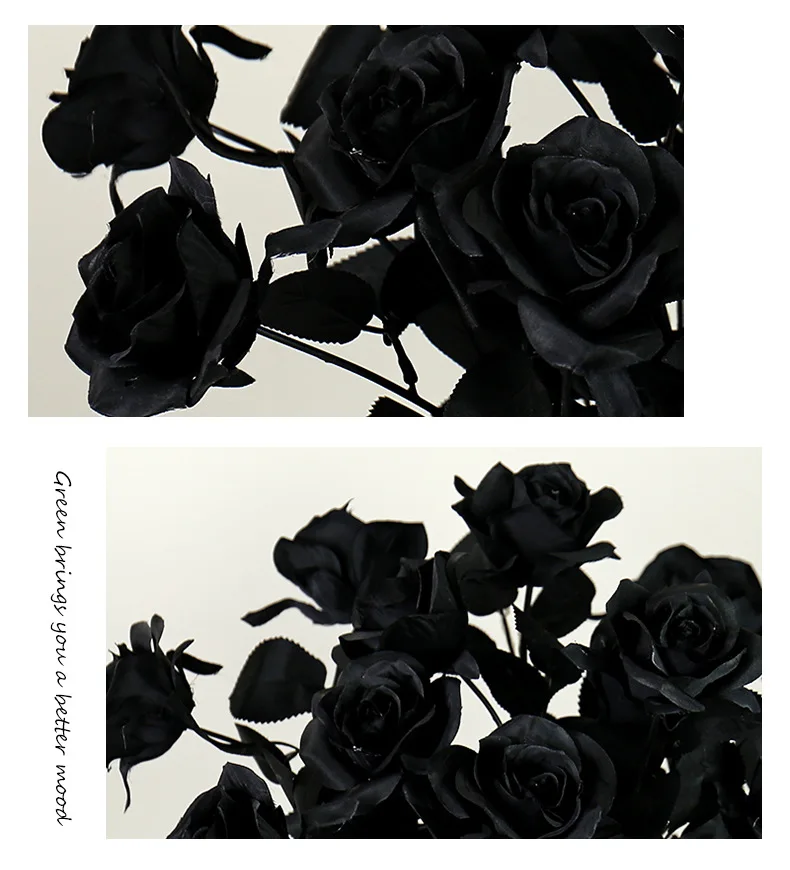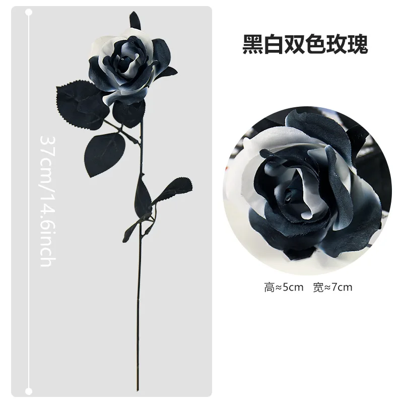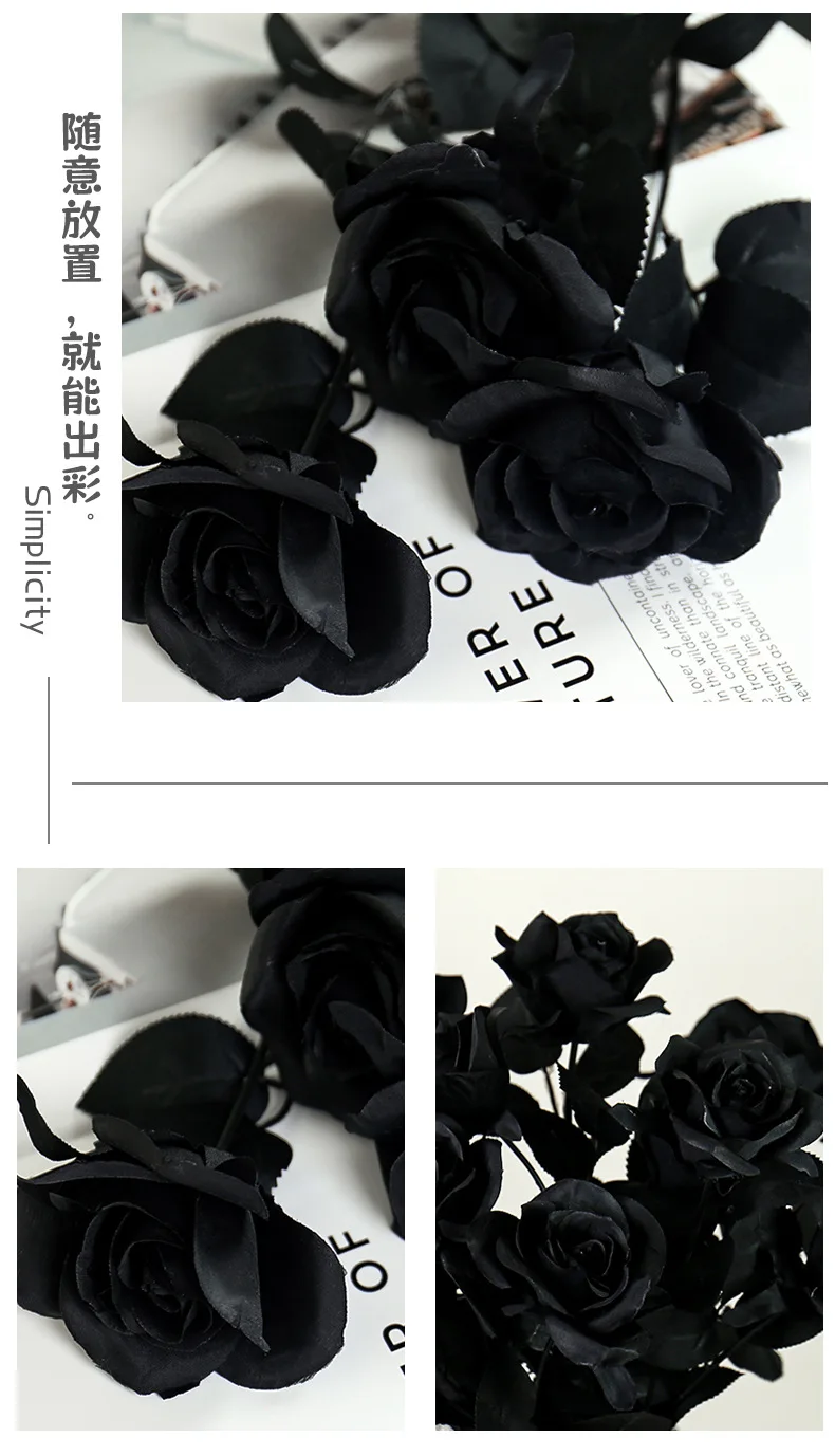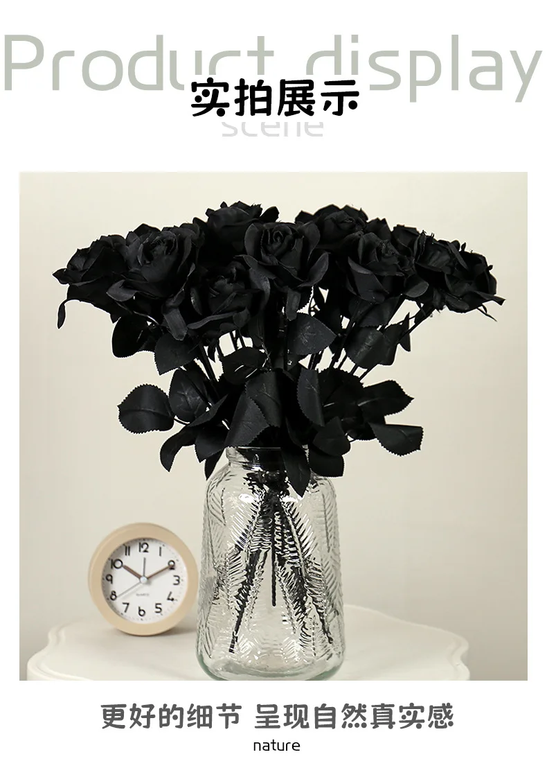 10pc Halloween Black Simulation Rose Flower Ornaments 37cm Flower Arrangement Props Black And White Simulation Flower Home Place