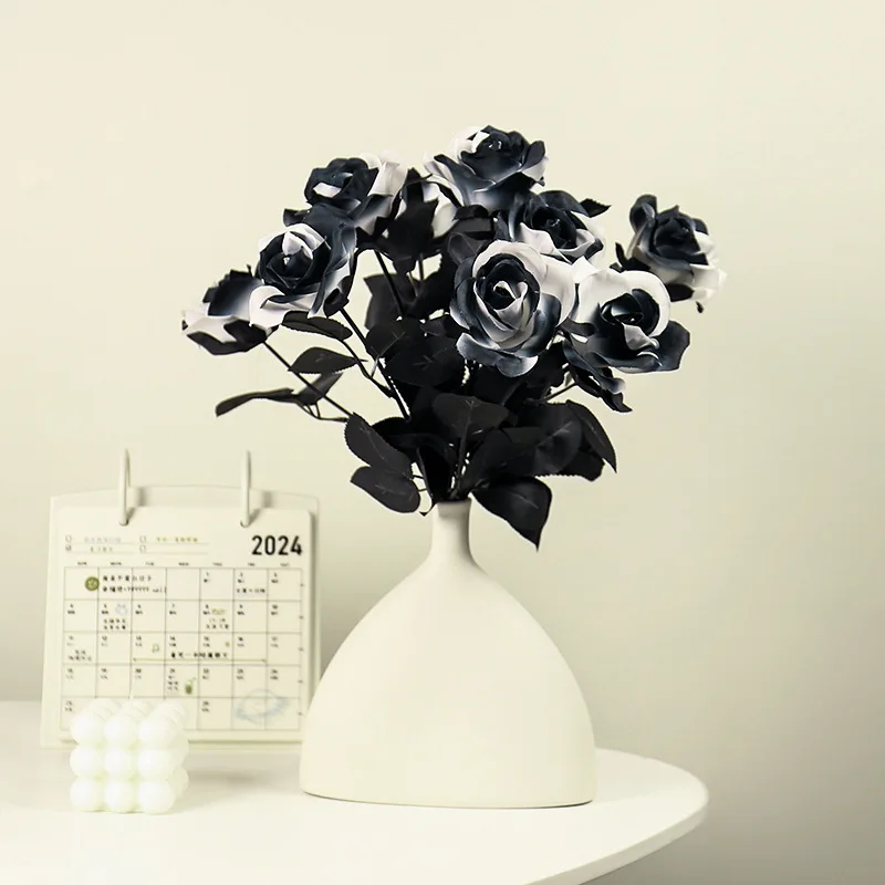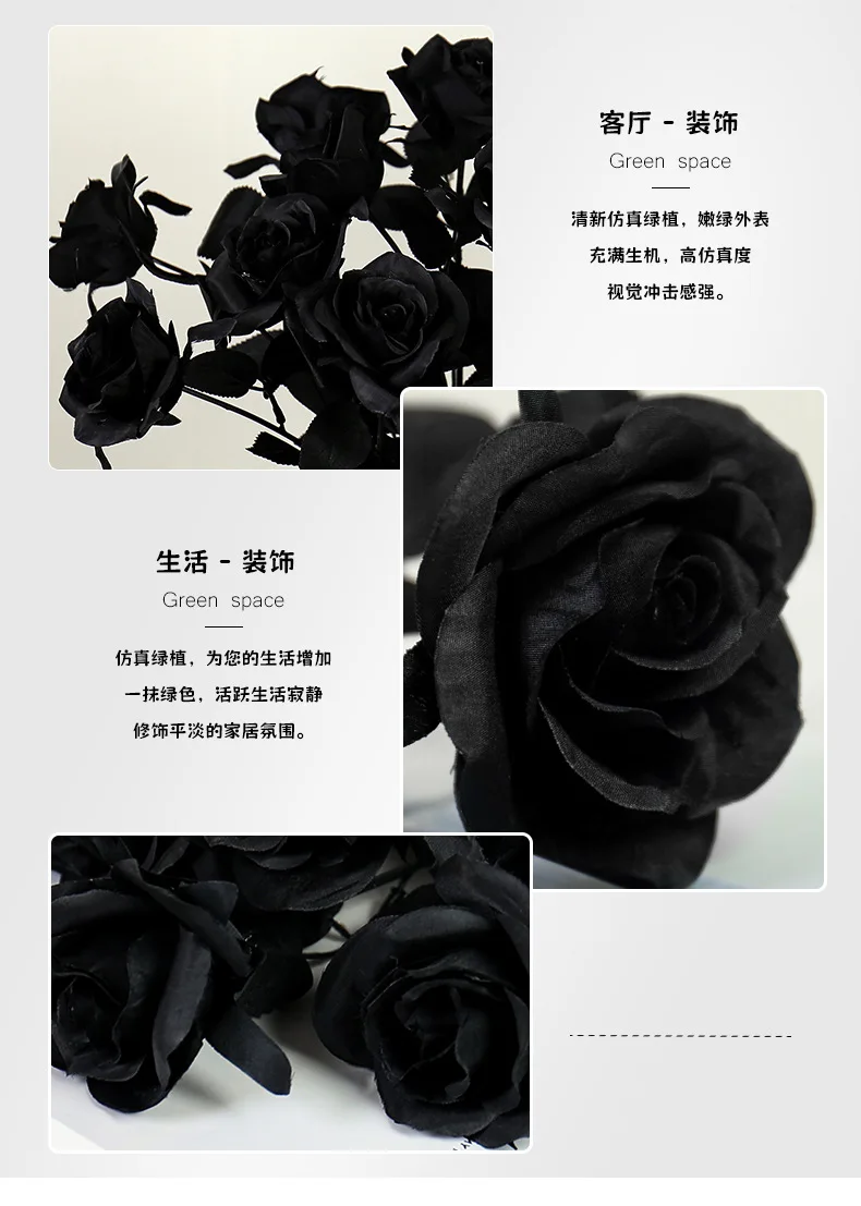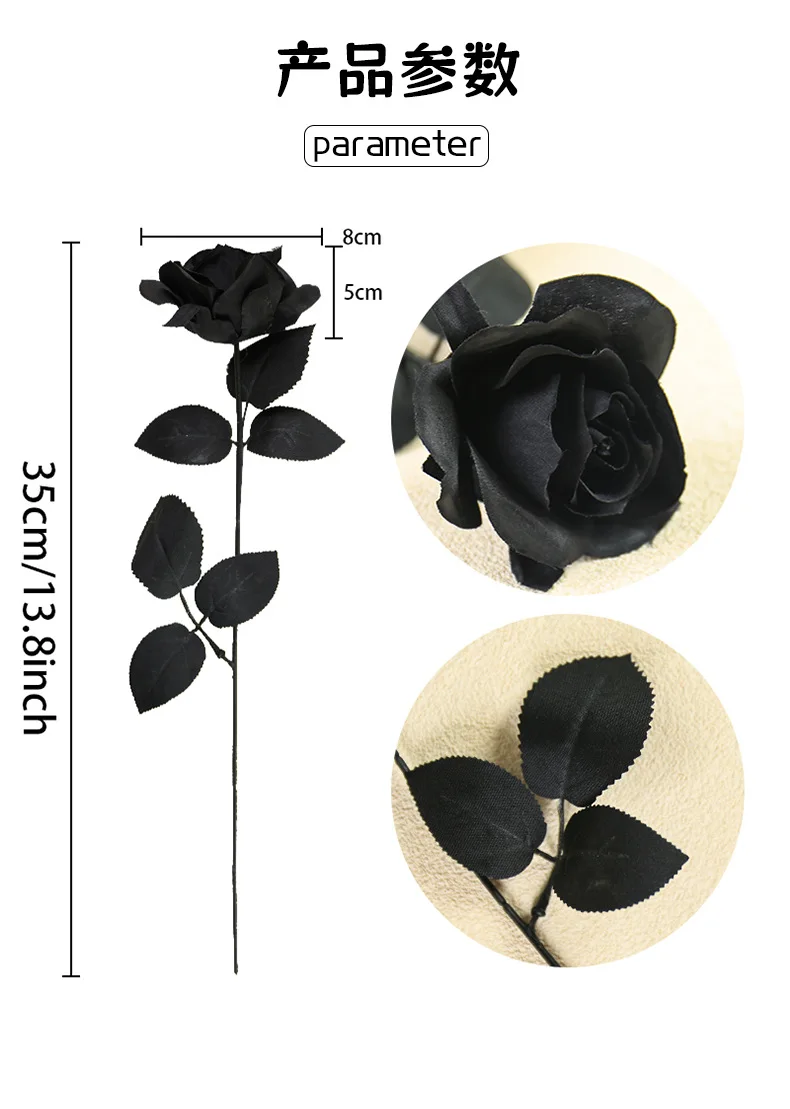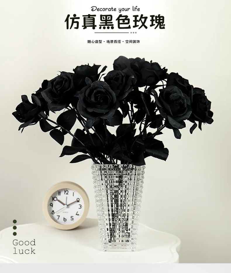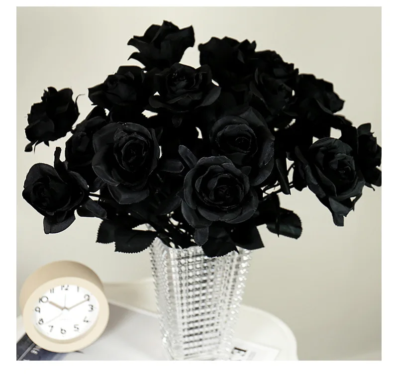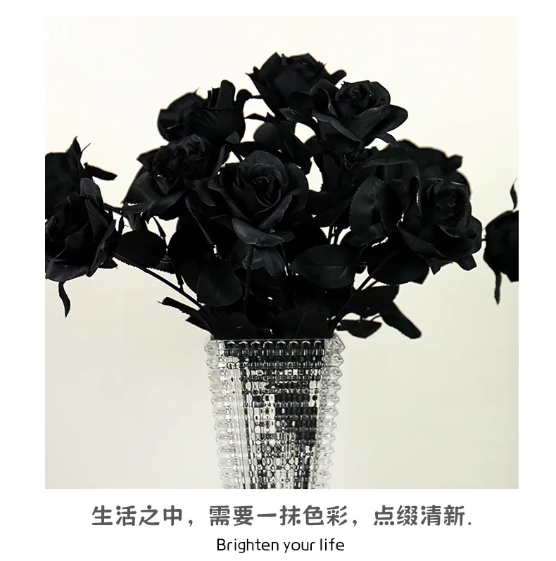 10pc Halloween Black Simulation Rose Flower Ornaments 37cm Flower Arrangement Props Black And White Simulation Flower Home Place