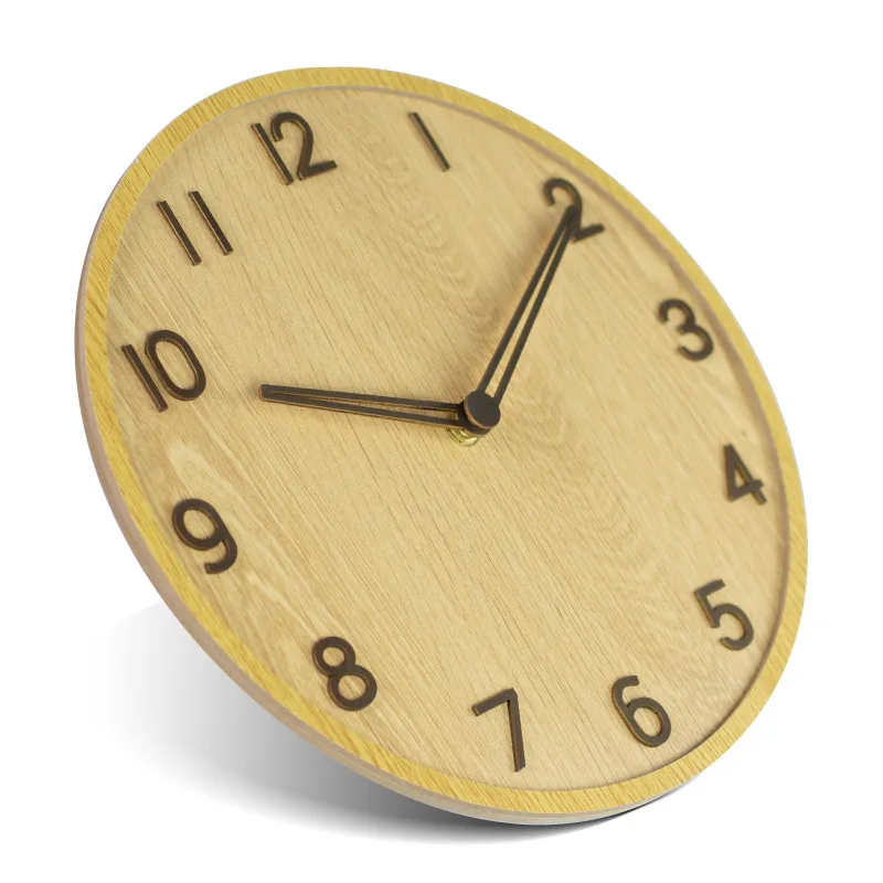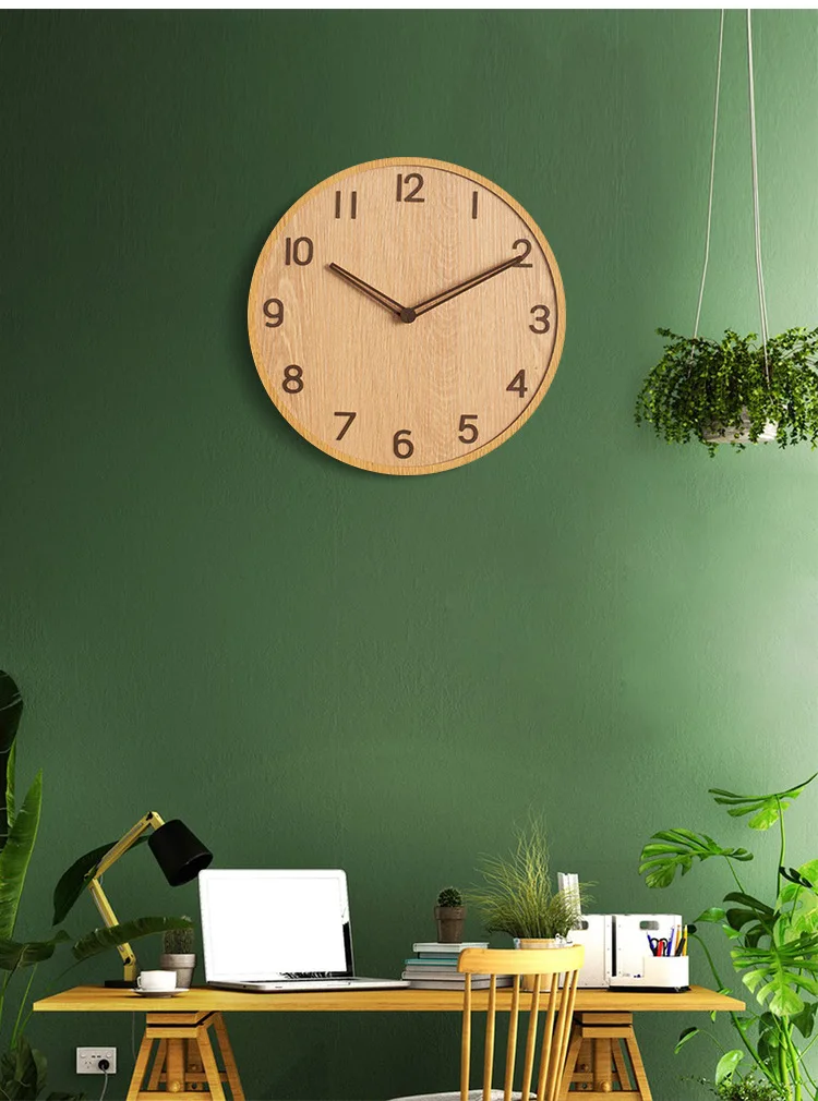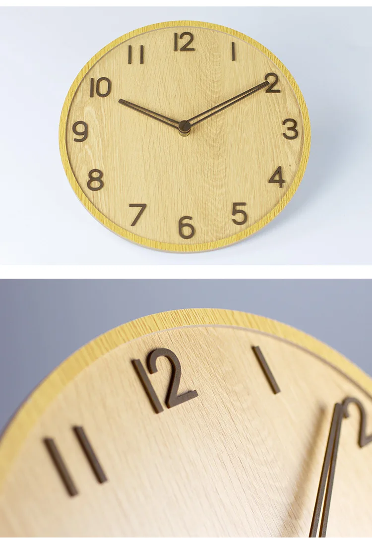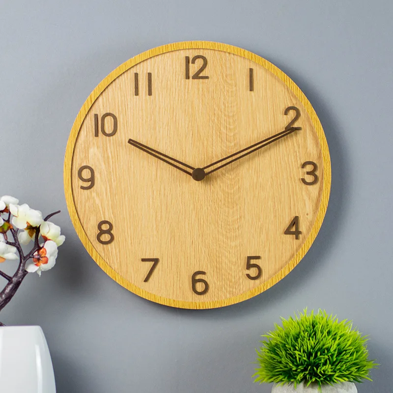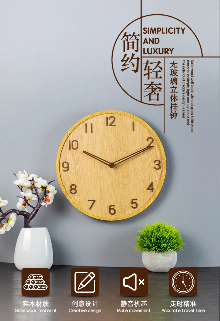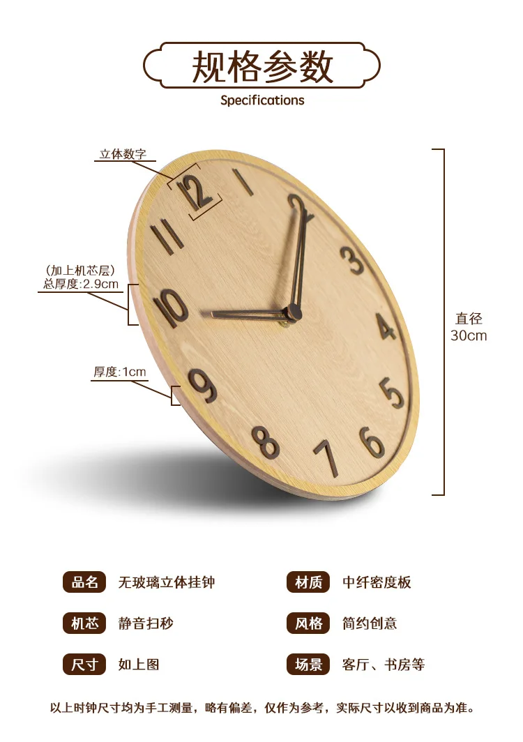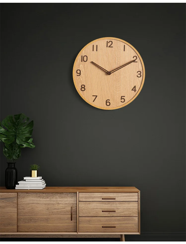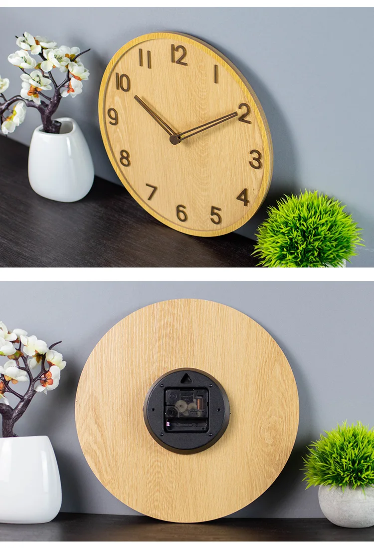 12 Inch 30cm Double-layer Wooden Round Stereo Wall Clock Living Room Watch Wall-mounted Log Wind Mute Quartz Clock Wall-mounted