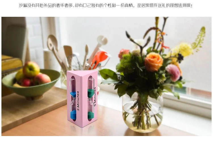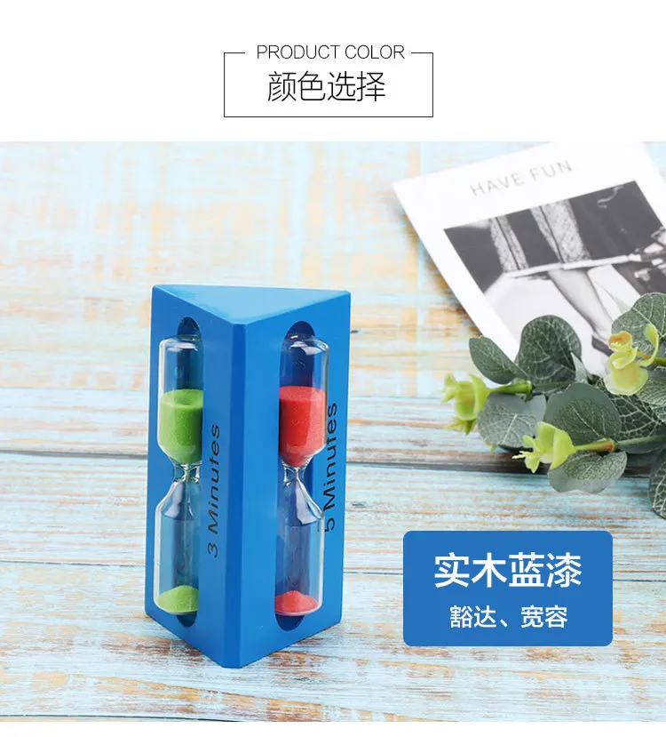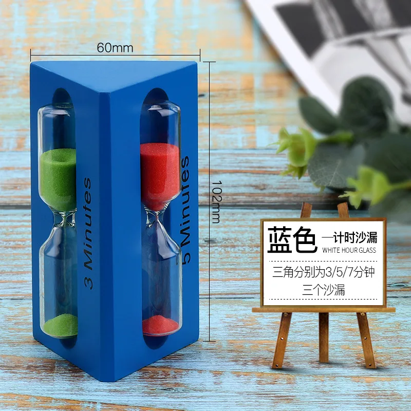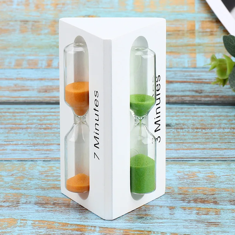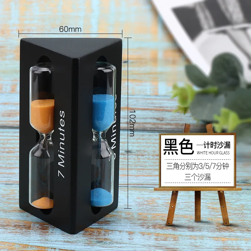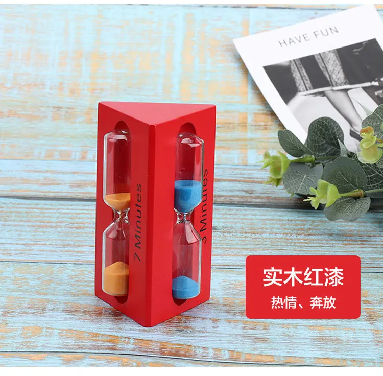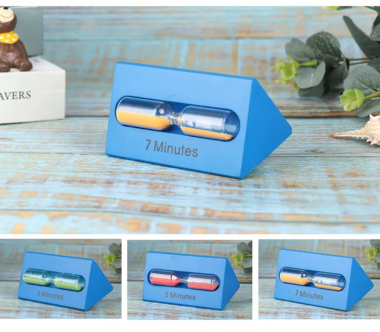 3/5/7 Minutes Solid Wood Hourglass Timer Color Triangle Time Funnel Creative Home Living Room Study Desktop Decorations