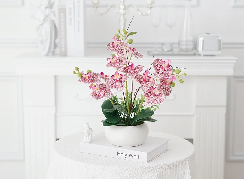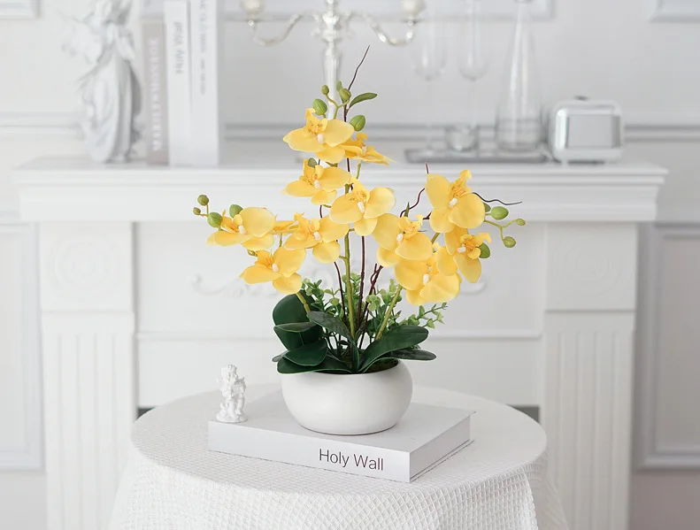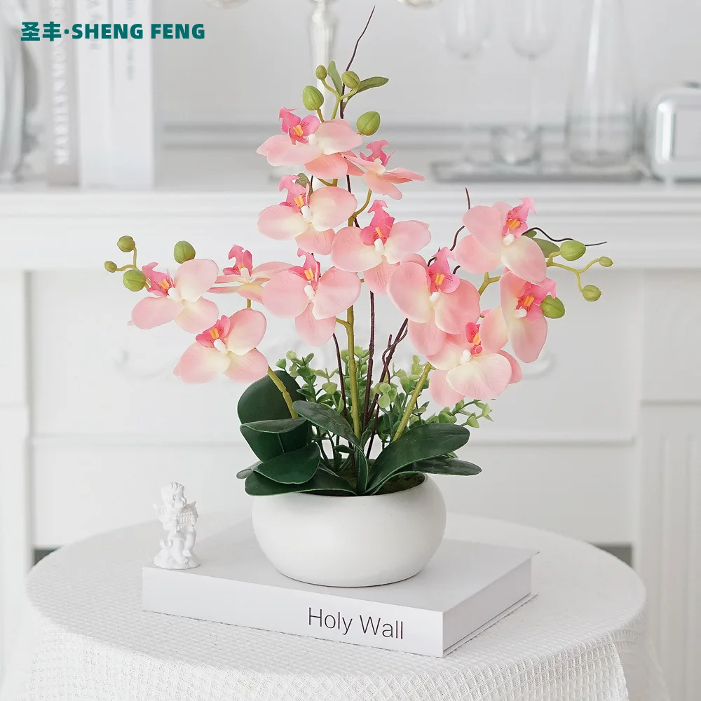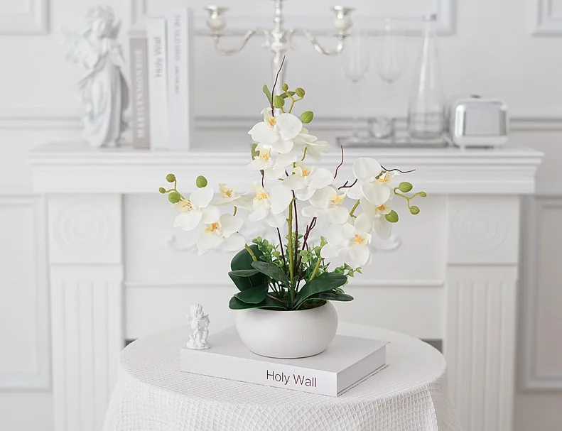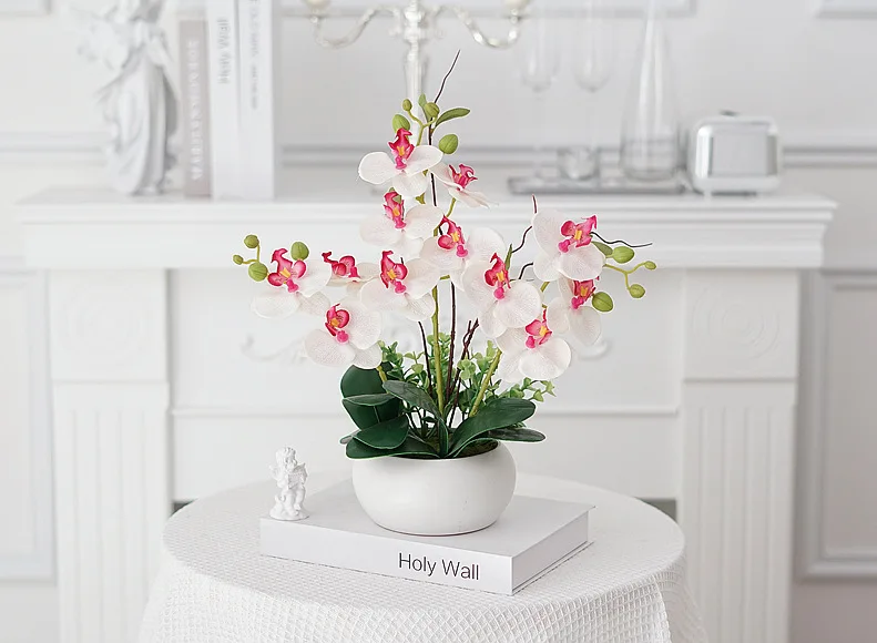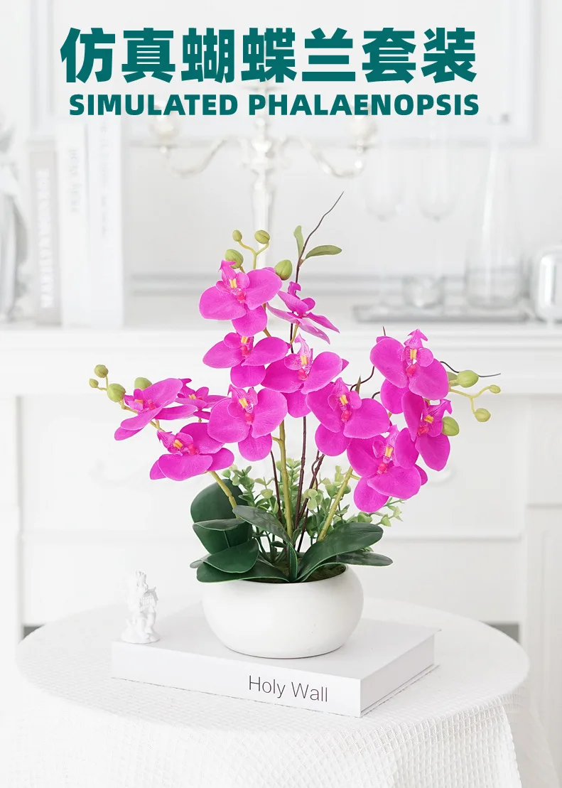 36 Cm Phalaenopsis Artificial Flower Potted Suit Gel Feel Fake Flower Ornaments Living Room Decoration Flower-arranging Ceramic