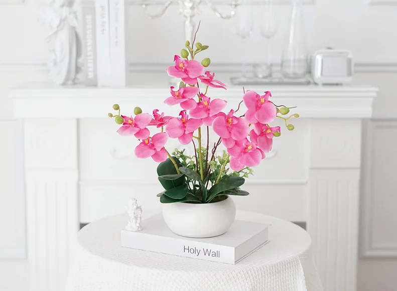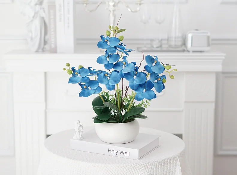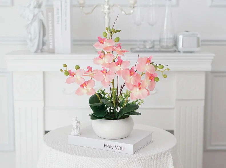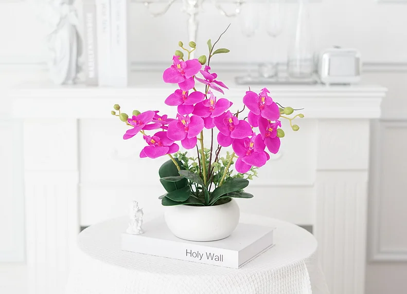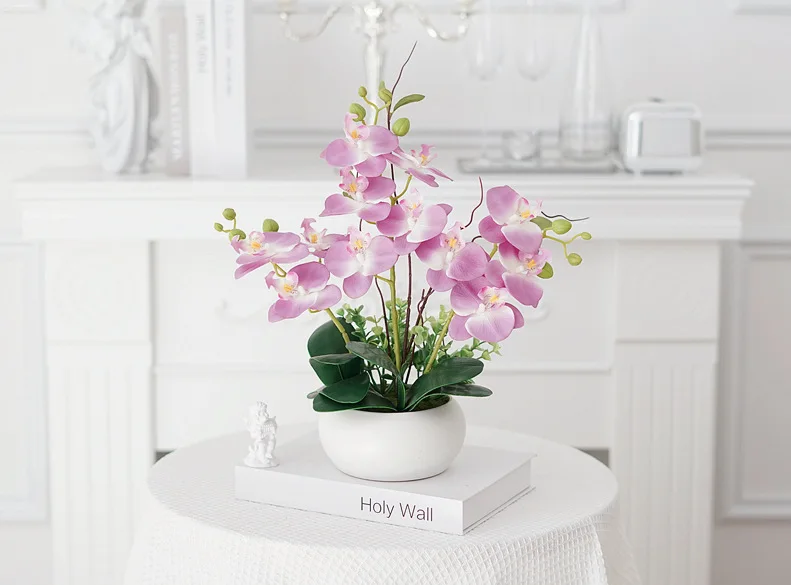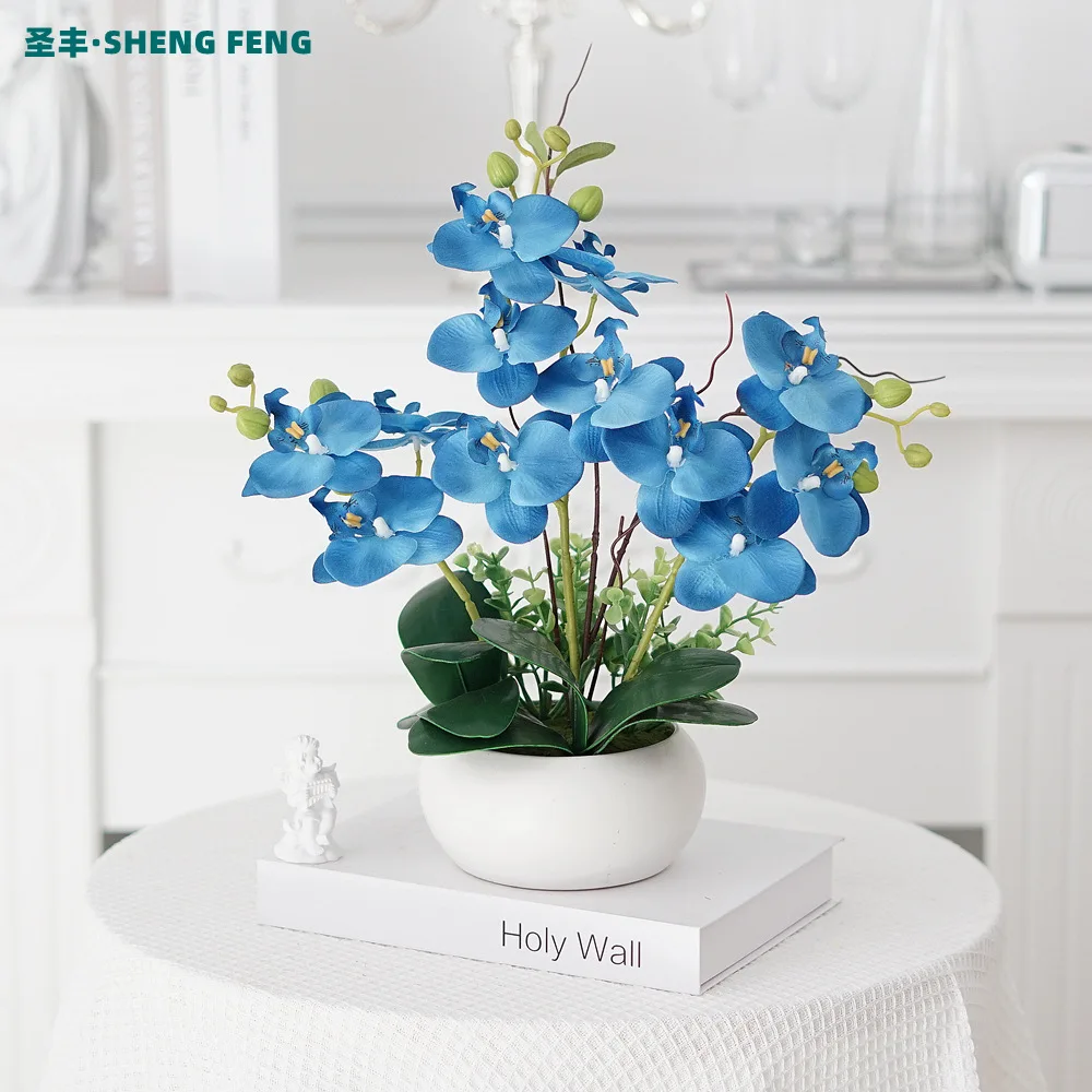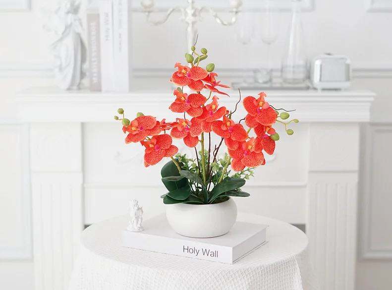 36 Cm Phalaenopsis Artificial Flower Potted Suit Gel Feel Fake Flower Ornaments Living Room Decoration Flower-arranging Ceramic
