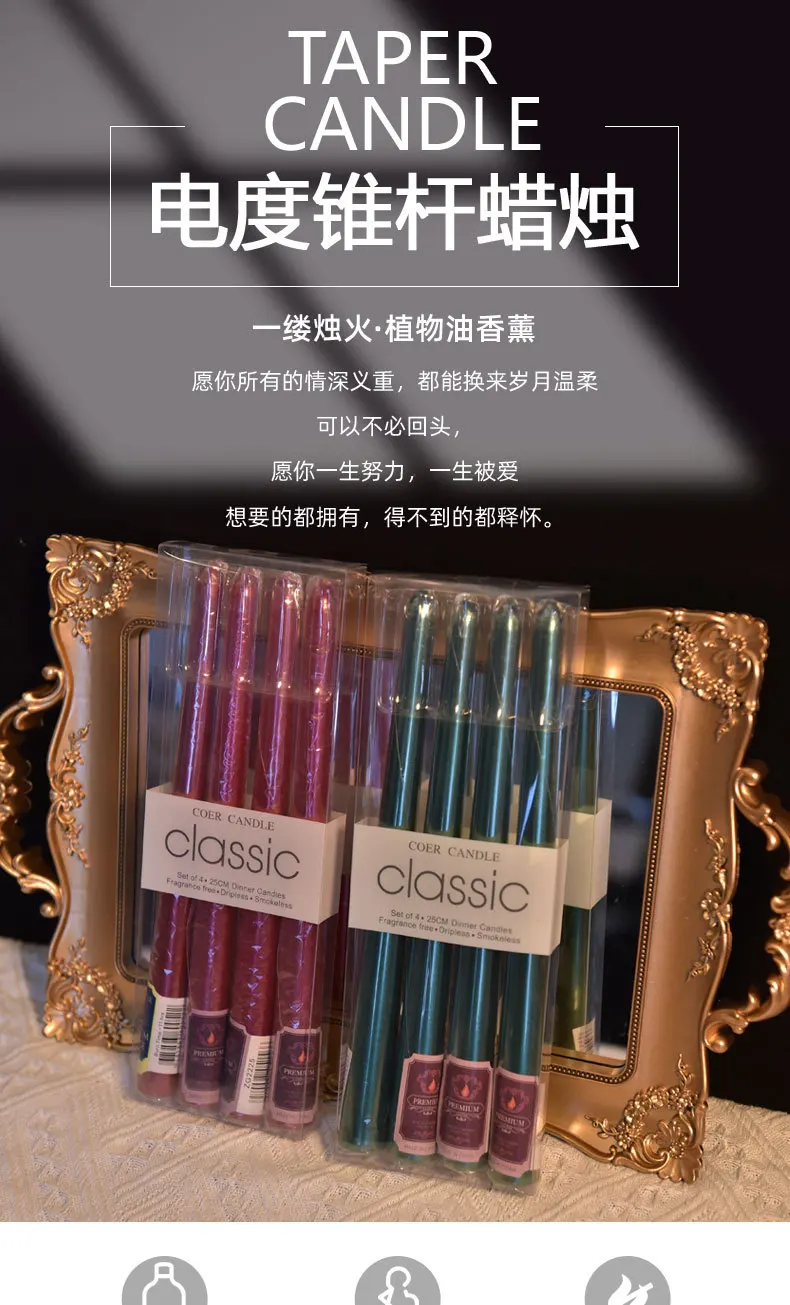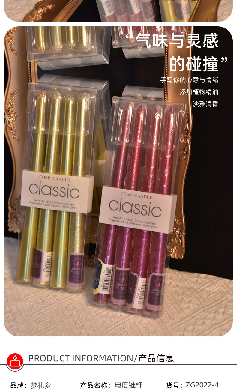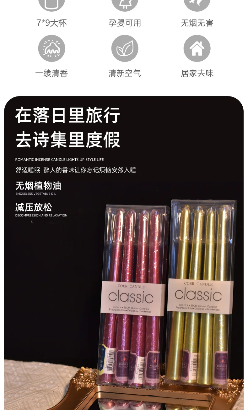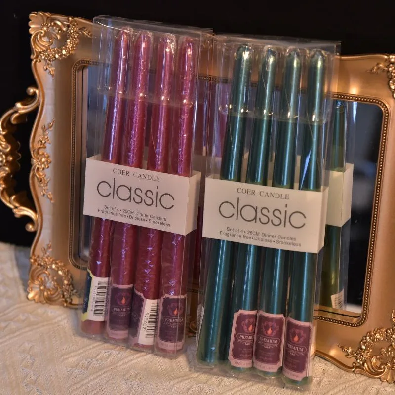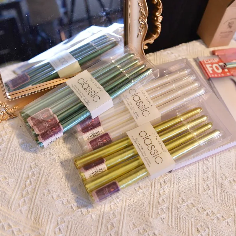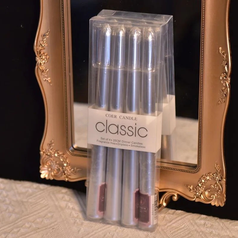 4 In A Box Of Classic Color Plating Long Rod Candles Single 60g Power Failure Emergency Lighting Candles Smokeless Romantic Wedd