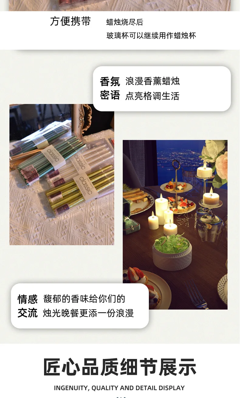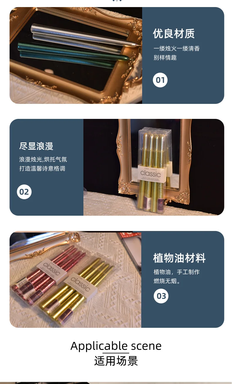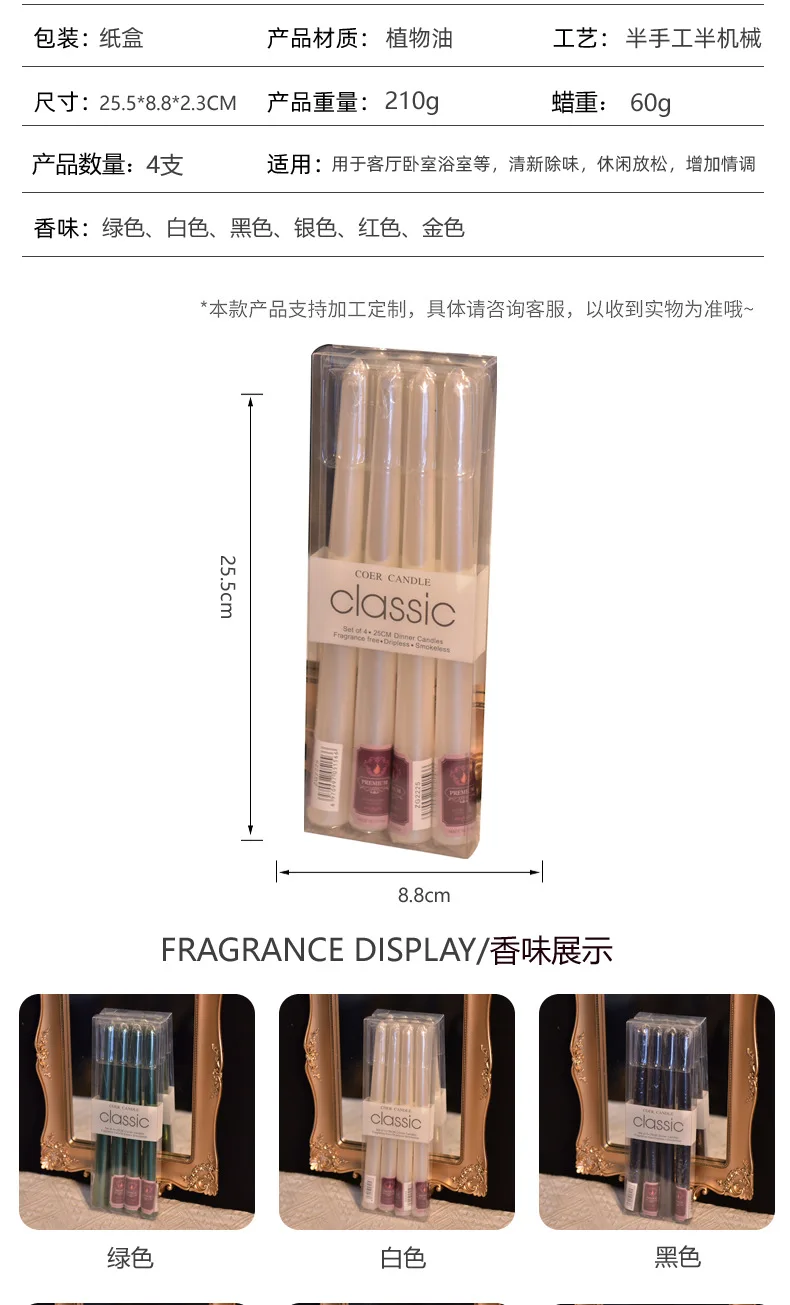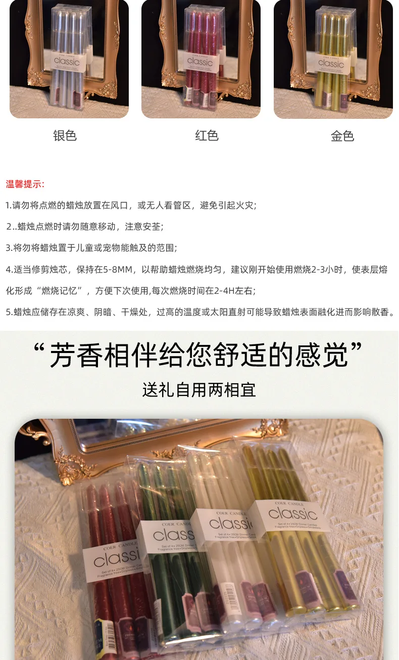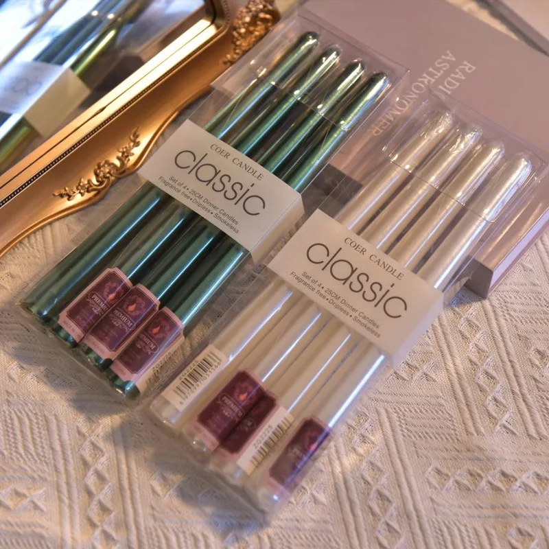 4 In A Box Of Classic Color Plating Long Rod Candles Single 60g Power Failure Emergency Lighting Candles Smokeless Romantic Wedd
