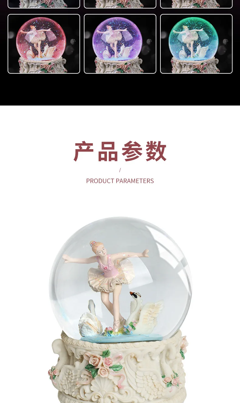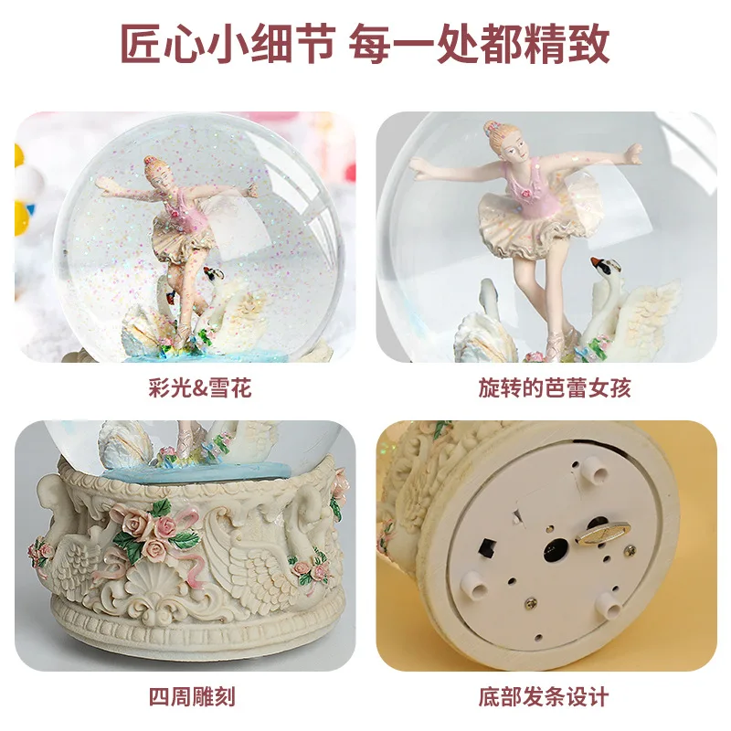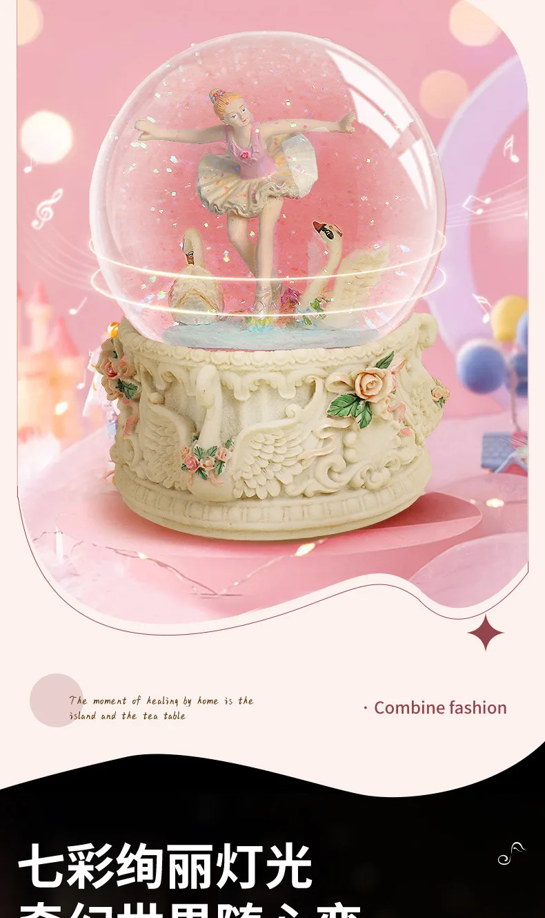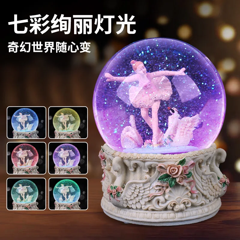 Ballet Girl, Snowflakes, Colorful Light, Snowflake Crystal Ball, Music Box, Creative Gift, Birthday Present, Gift-giving Music B