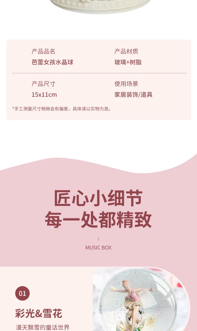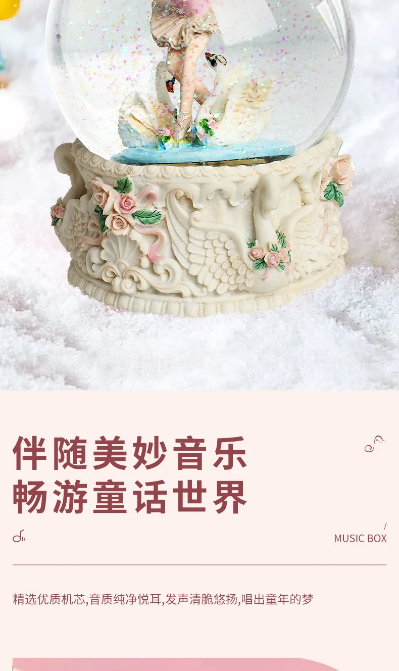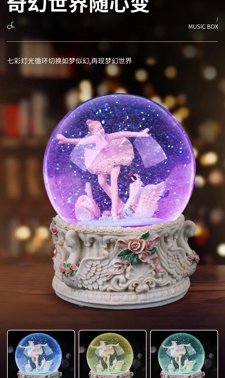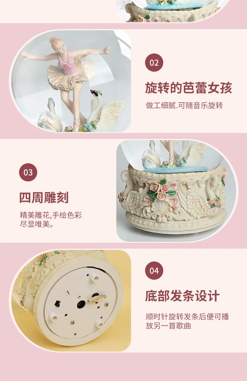Ballet Girl, Snowflakes, Colorful Light, Snowflake Crystal Ball, Music Box, Creative Gift, Birthday Present, Gift-giving Music B