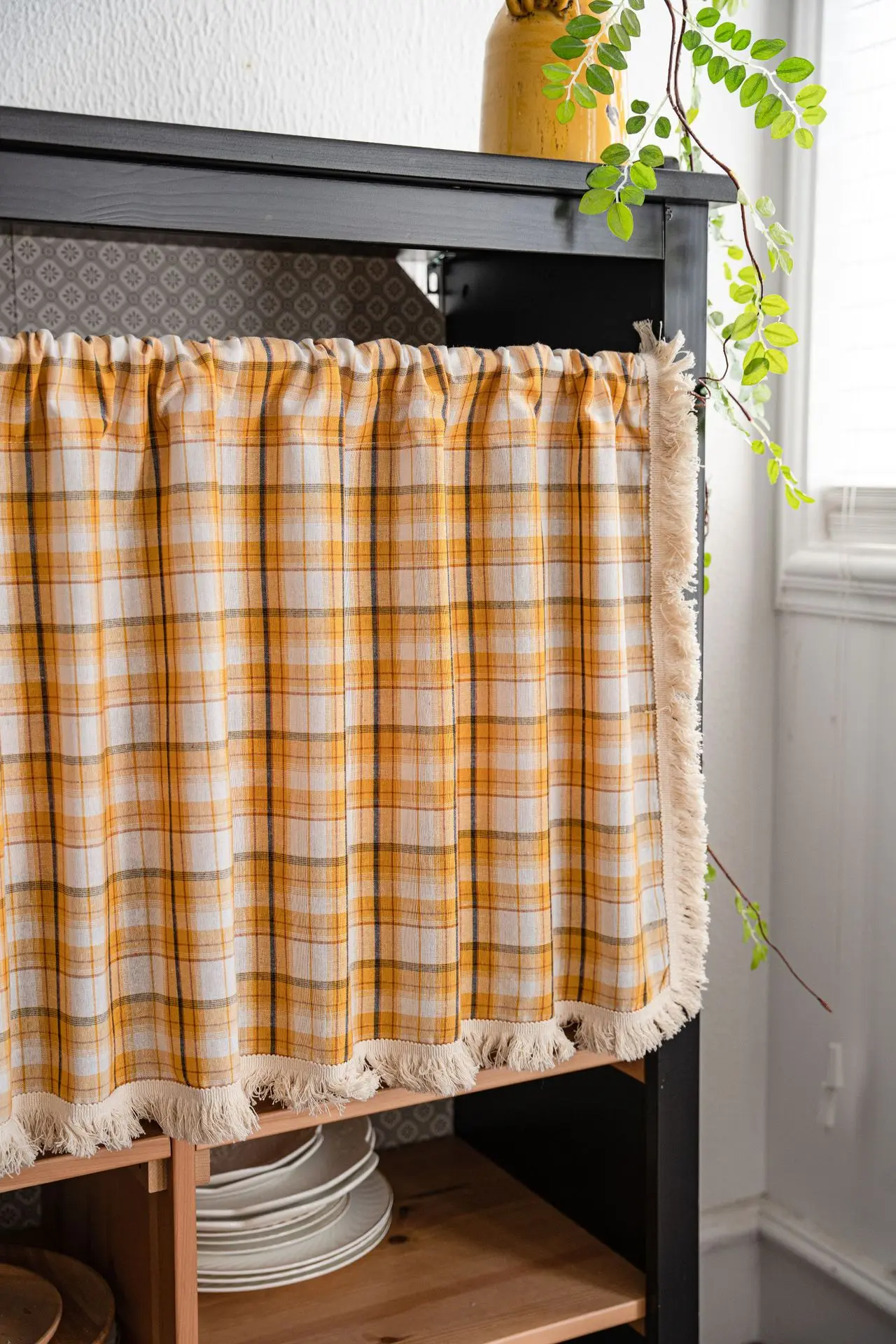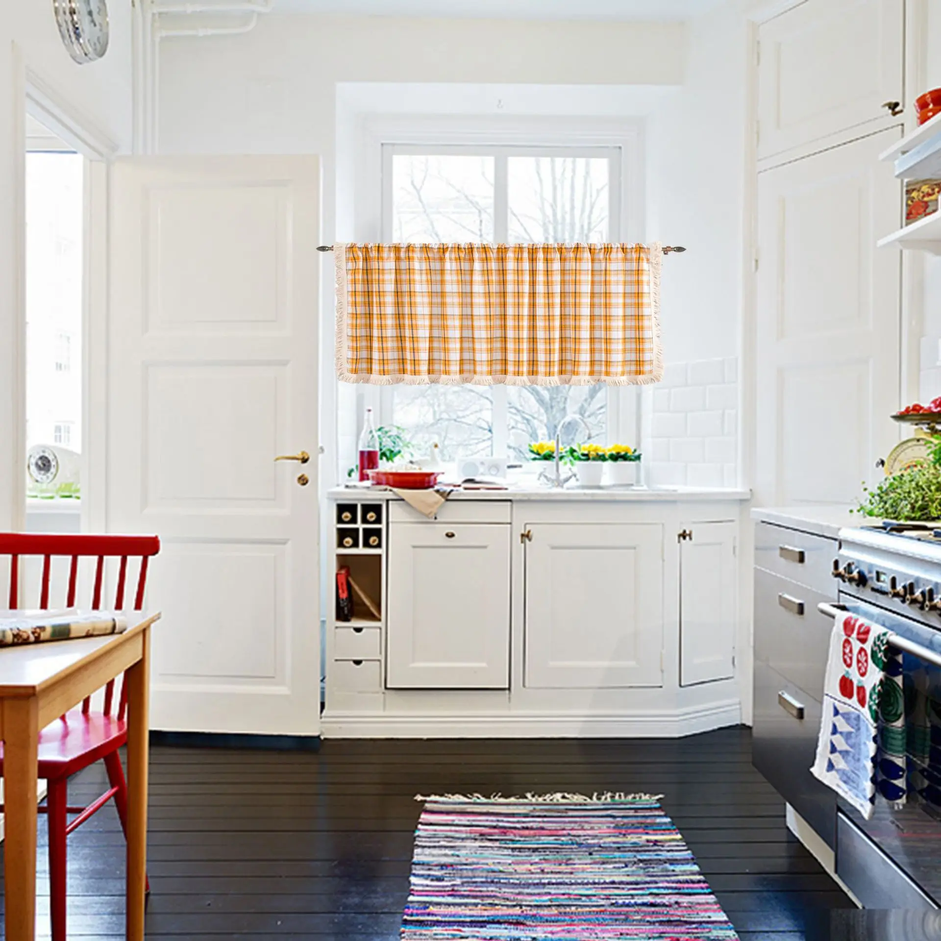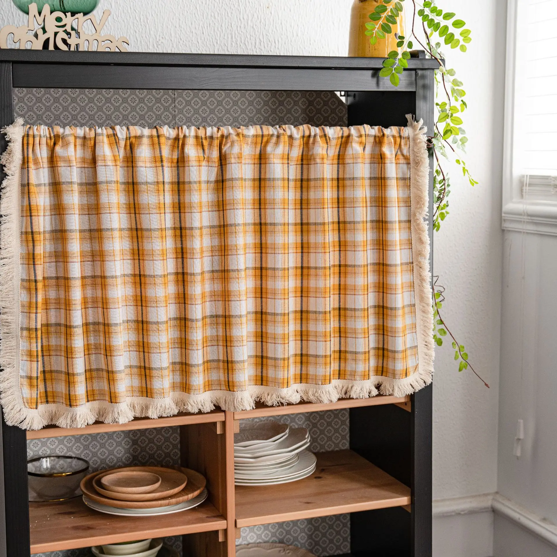 Cotton And Linen Plaid Tassel Orange Cabinet Dust Curtain 1.5m Wide Window Curtain Half Curtain Door Curtain Coffee Curtain Kitc