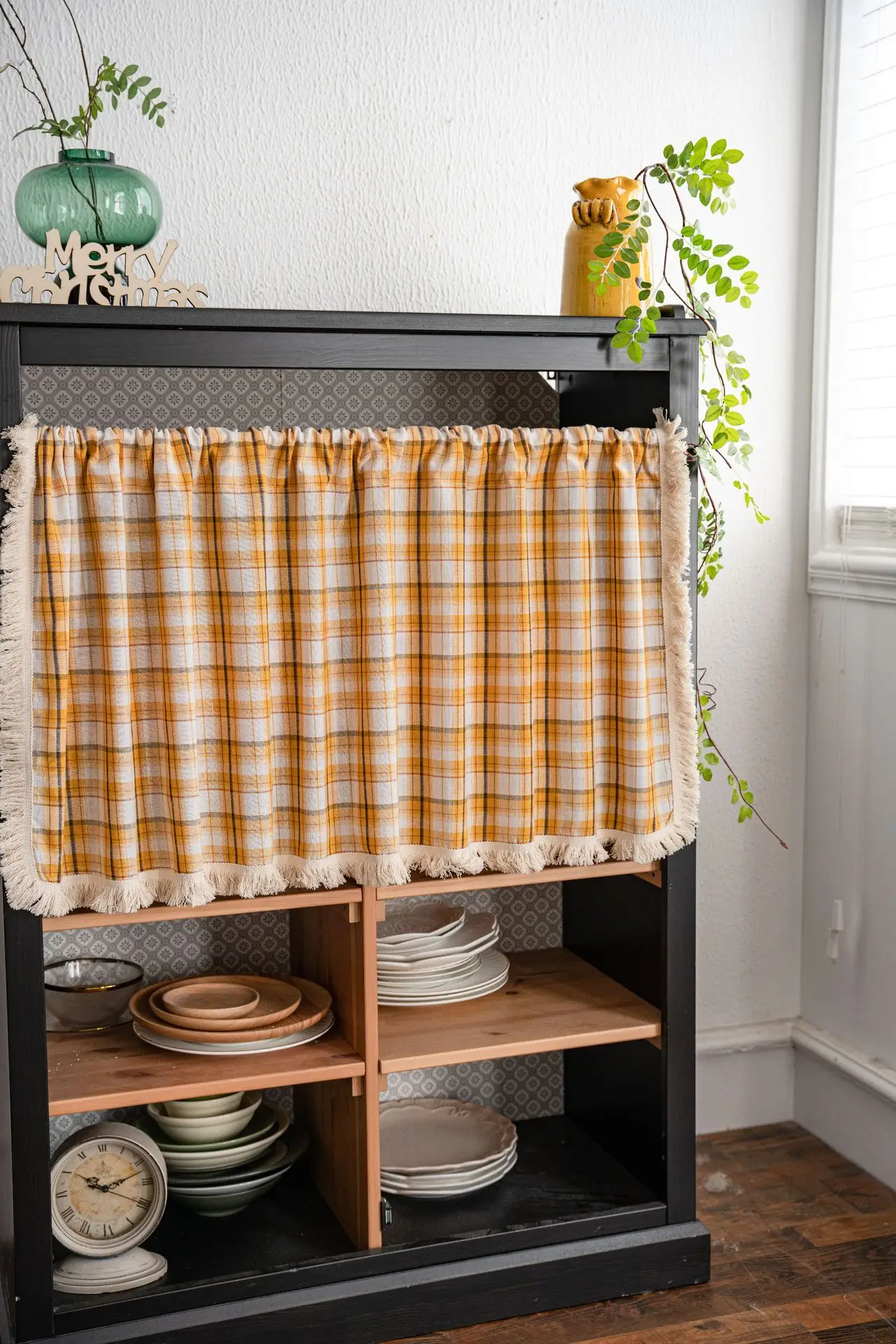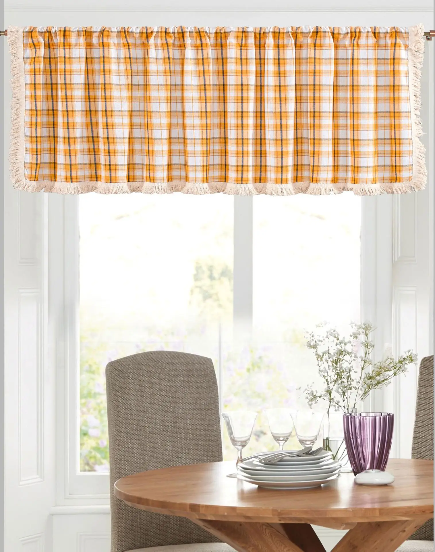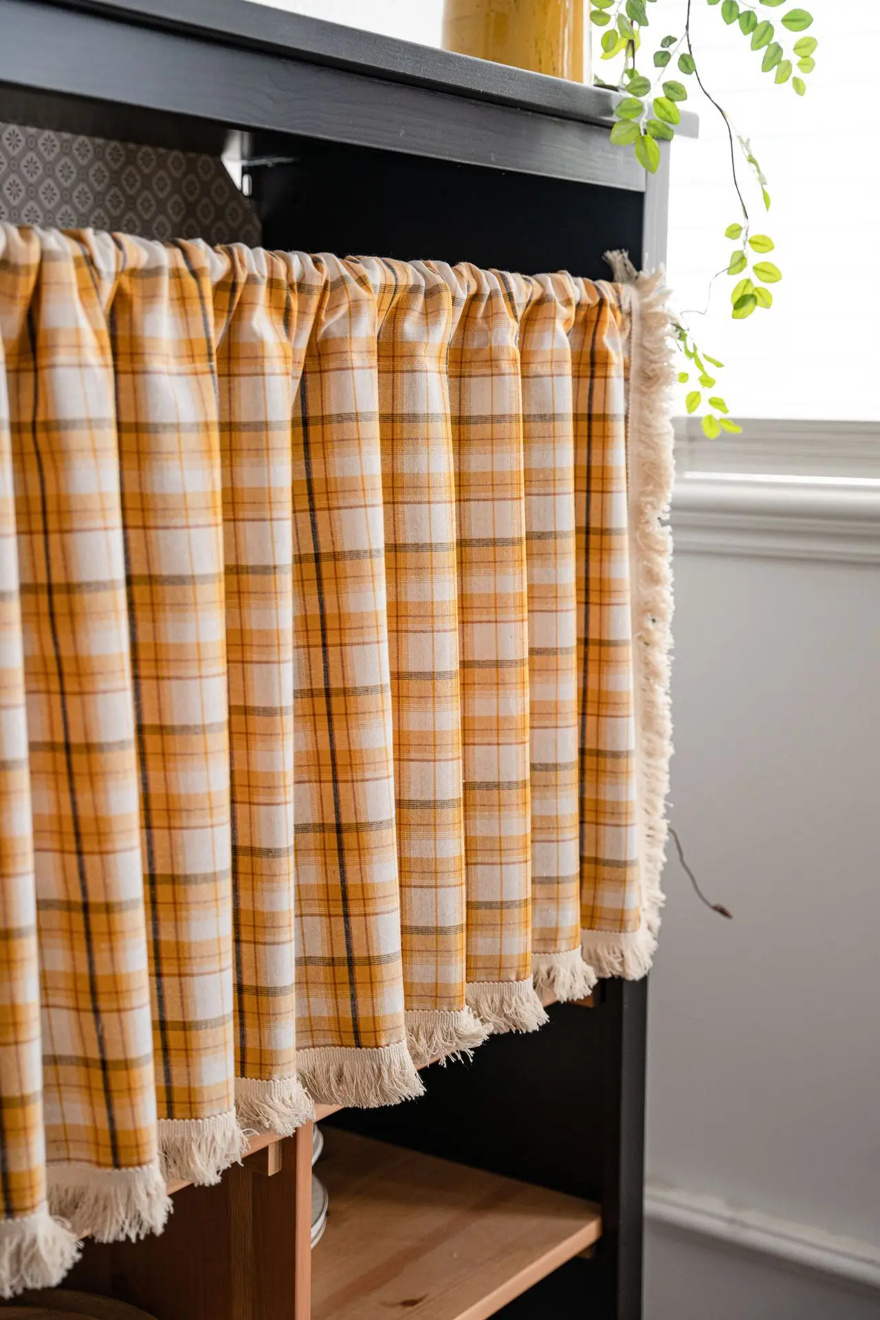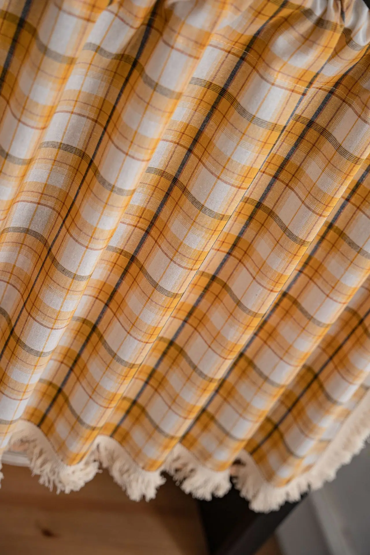 Cotton And Linen Plaid Tassel Orange Cabinet Dust Curtain 1.5m Wide Window Curtain Half Curtain Door Curtain Coffee Curtain Kitc