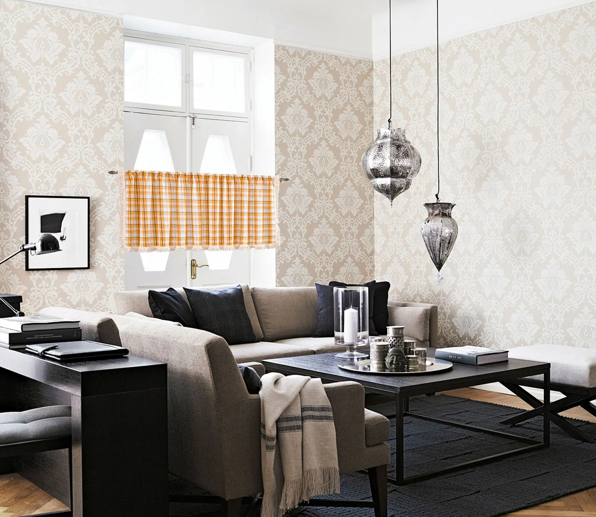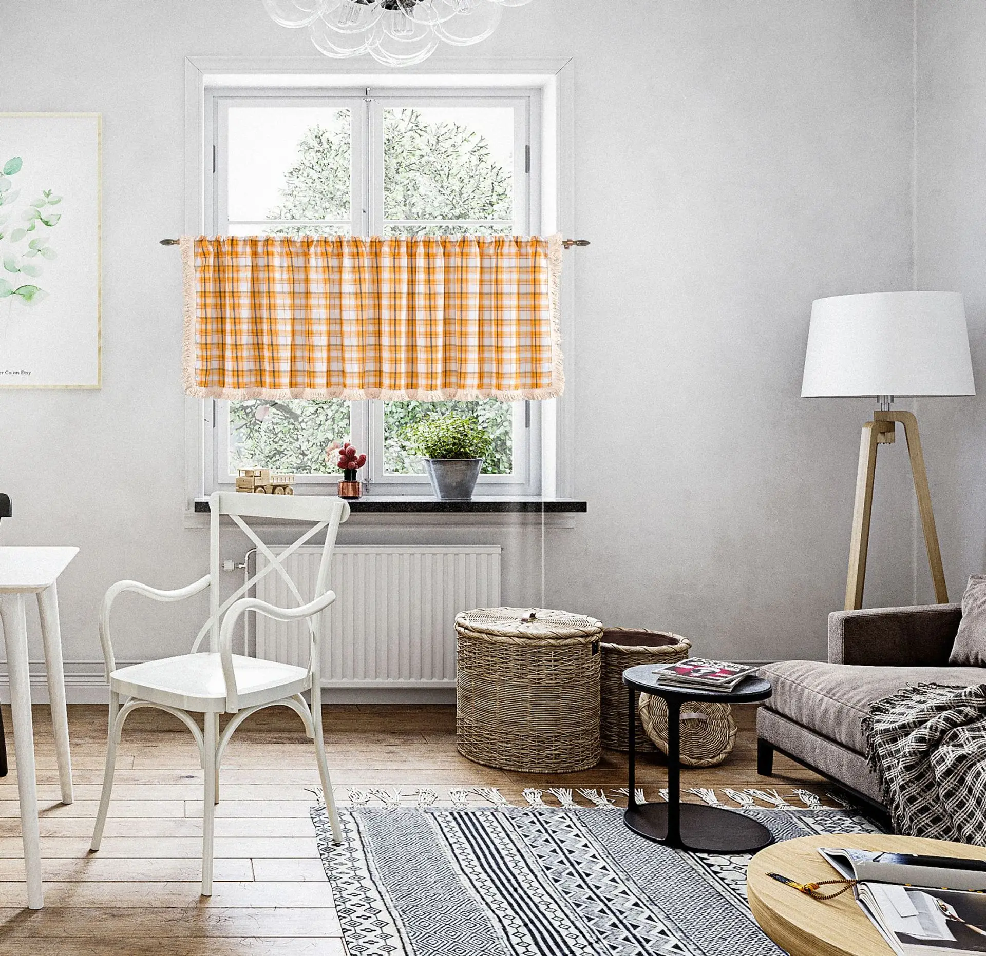 Be the first to review “Cotton And Linen Plaid Tassel Orange Cabinet Dust Curtain 1.5m Wide Window Curtain Half Curtain Door Curtain Coffee Curtain Kitc”