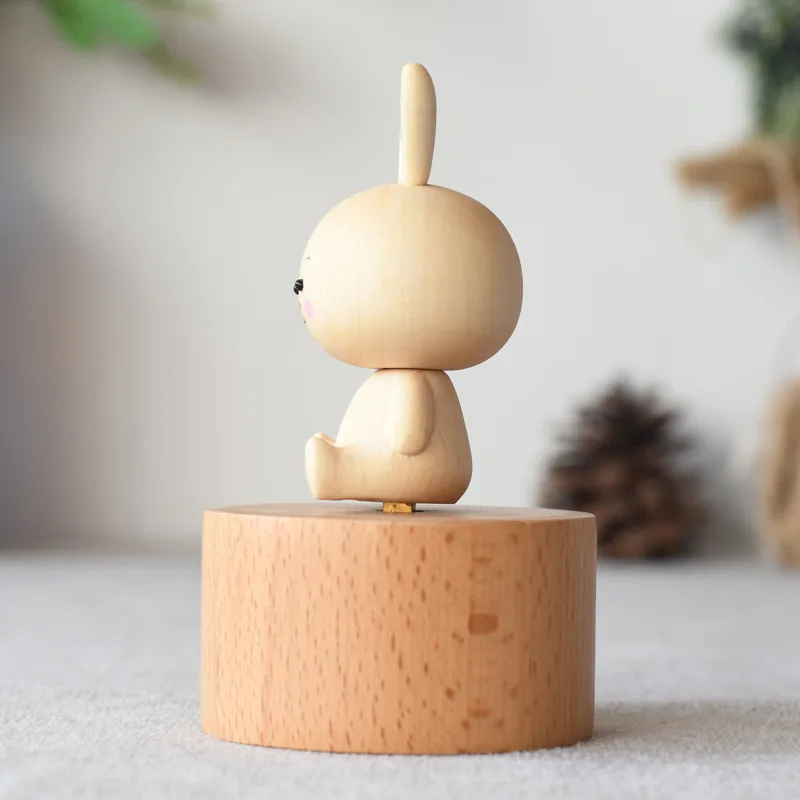 Cute Baby Rabbit Music Box Sky City Music Box Handmade Wooden Crafts Music Box Music Bell Birthday Holiday Gift Home Decoration