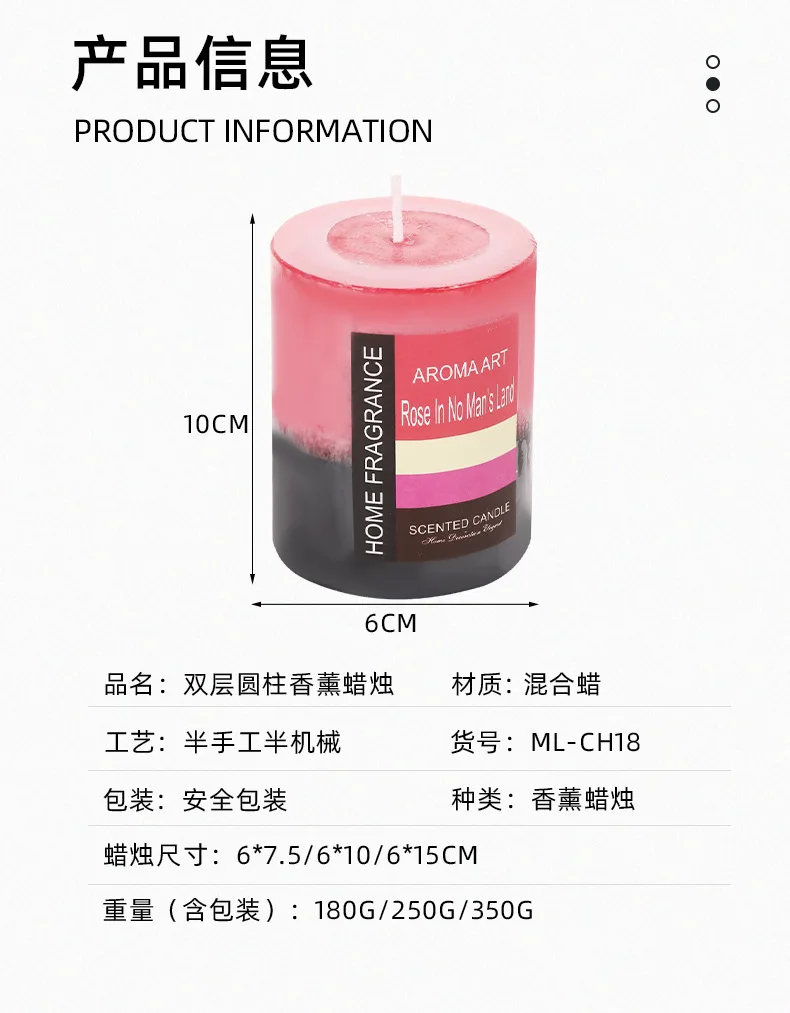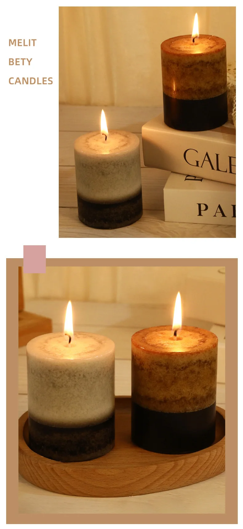 Diameter 6cm Handmade Vintage Cylindrical Scented Candle Home Smokeless Romantic Ornament Emergency Lighting Wedding Church Cand