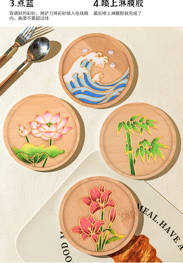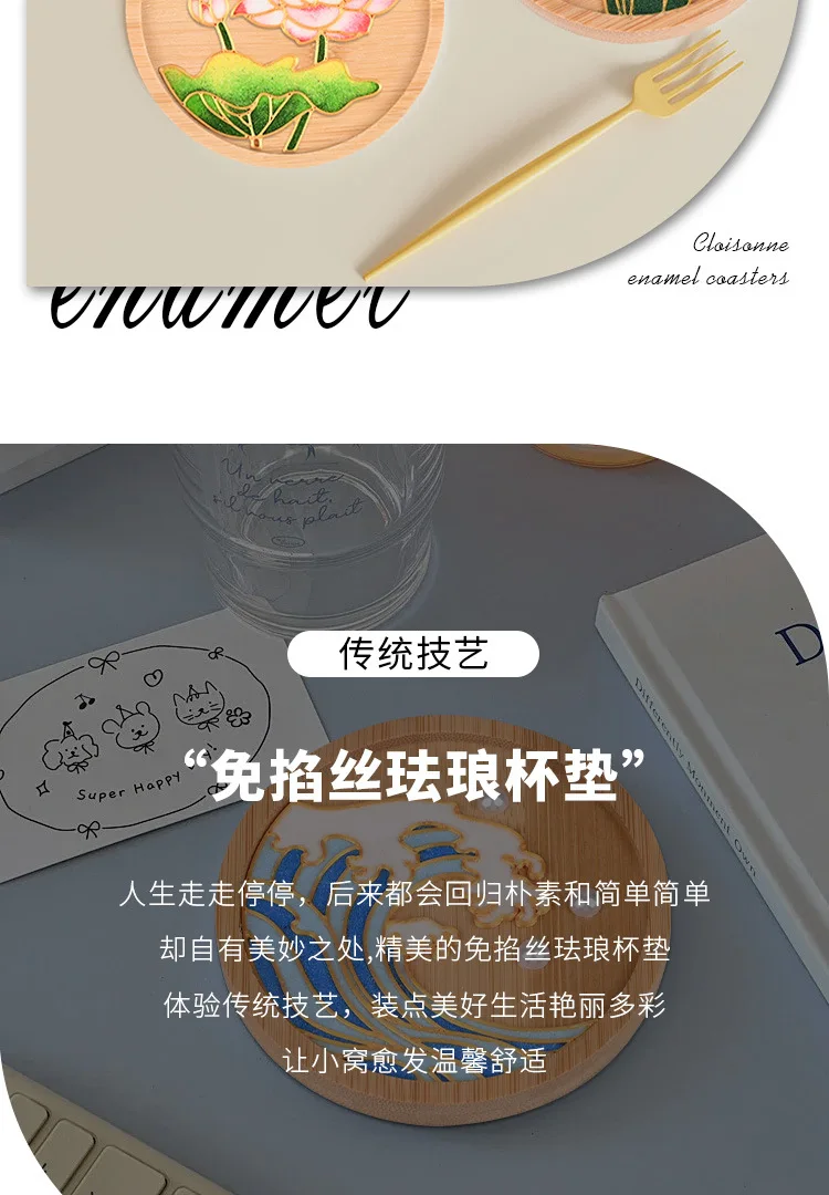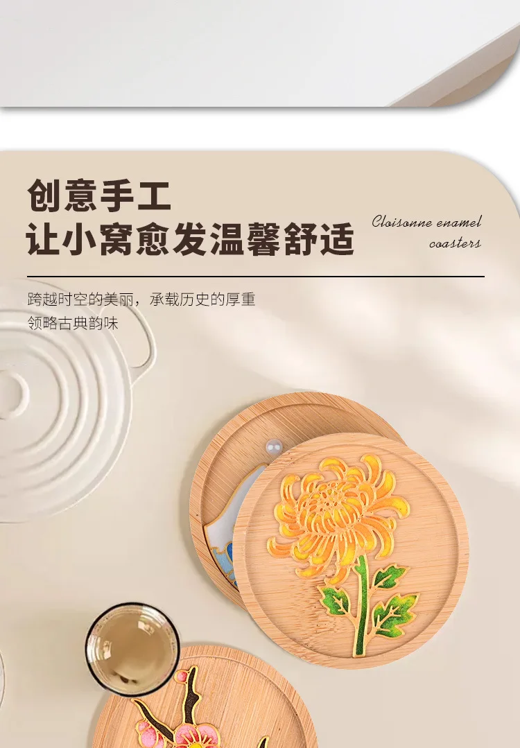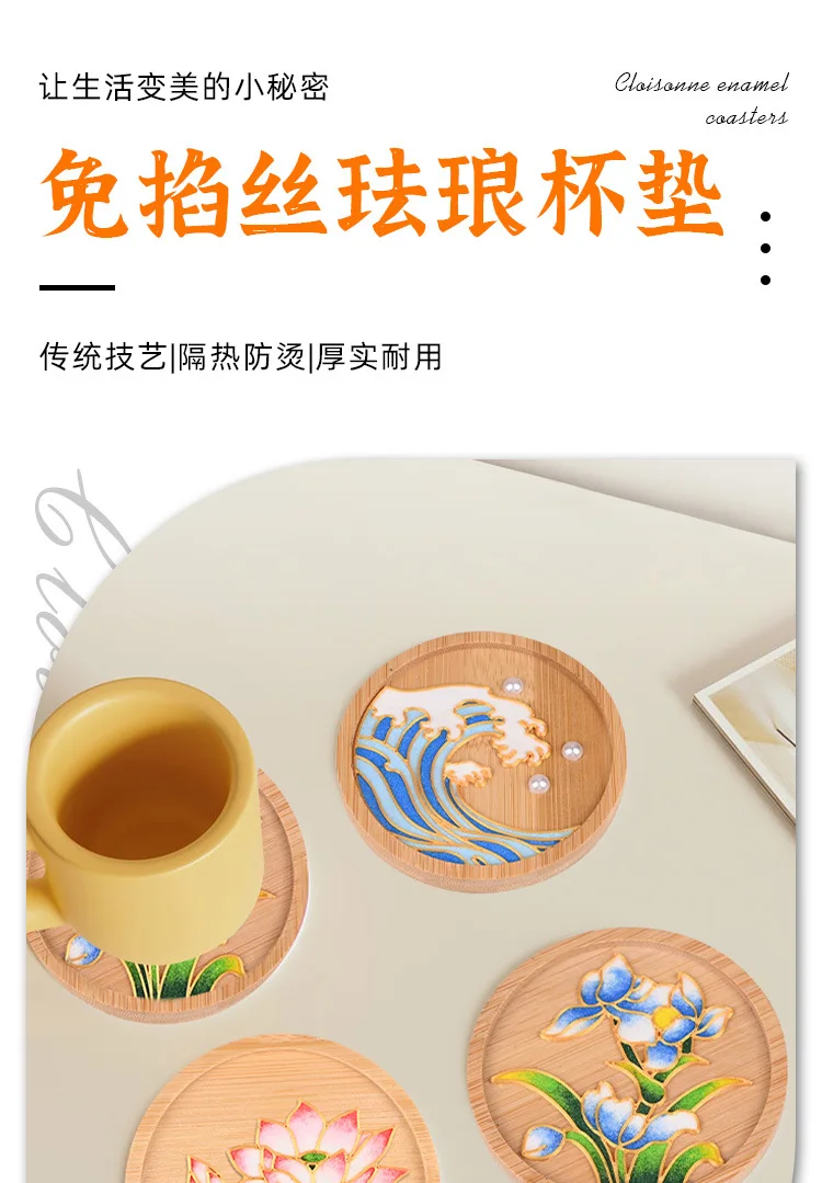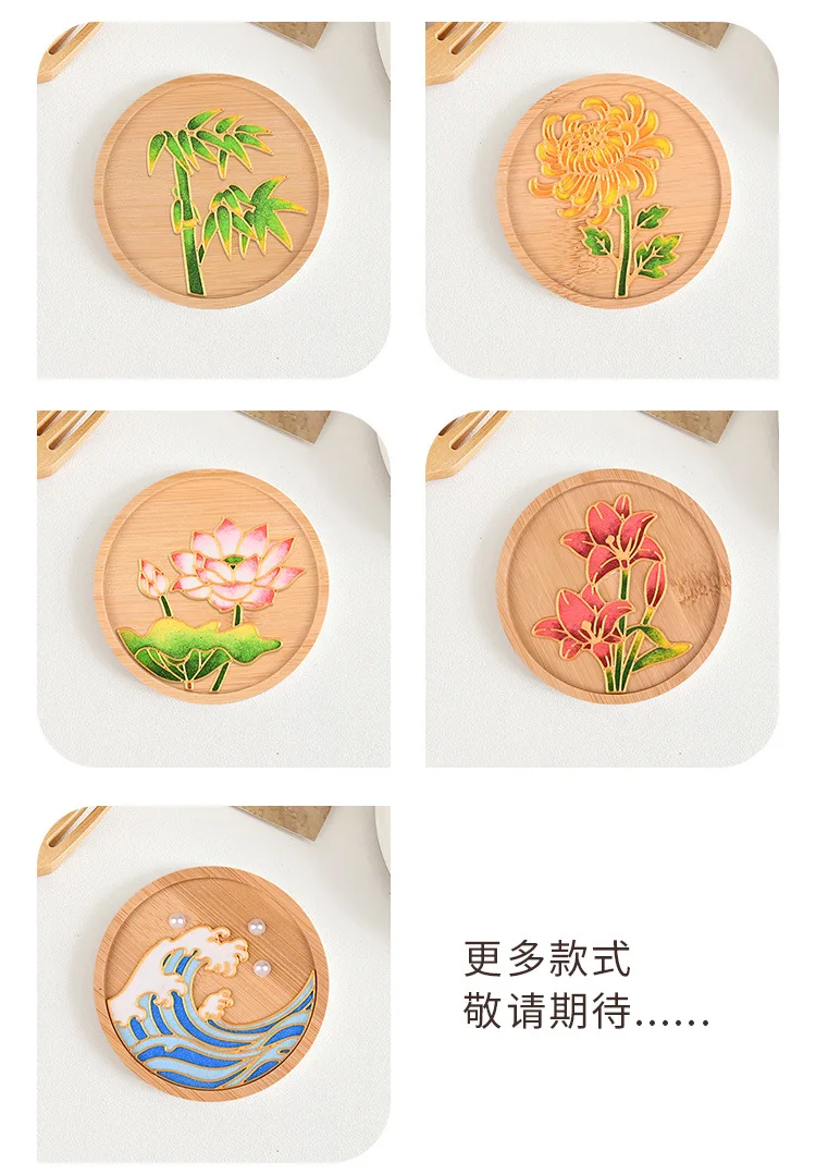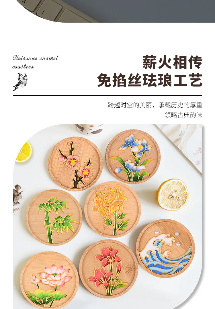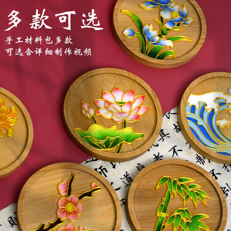 Diy Cloisonne Enamel Coasters Without Cloisonne, Diy Material Kit For Beginners, Handmade Circular 9.5cm Plum Blossom And Lotus
