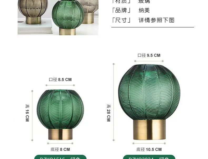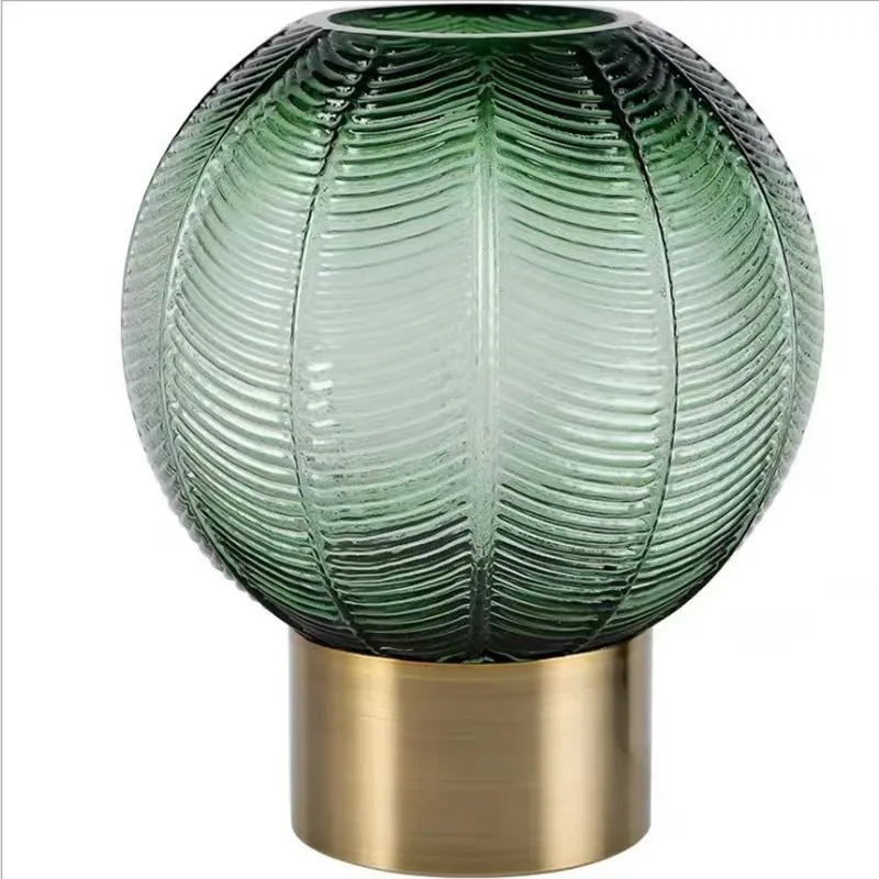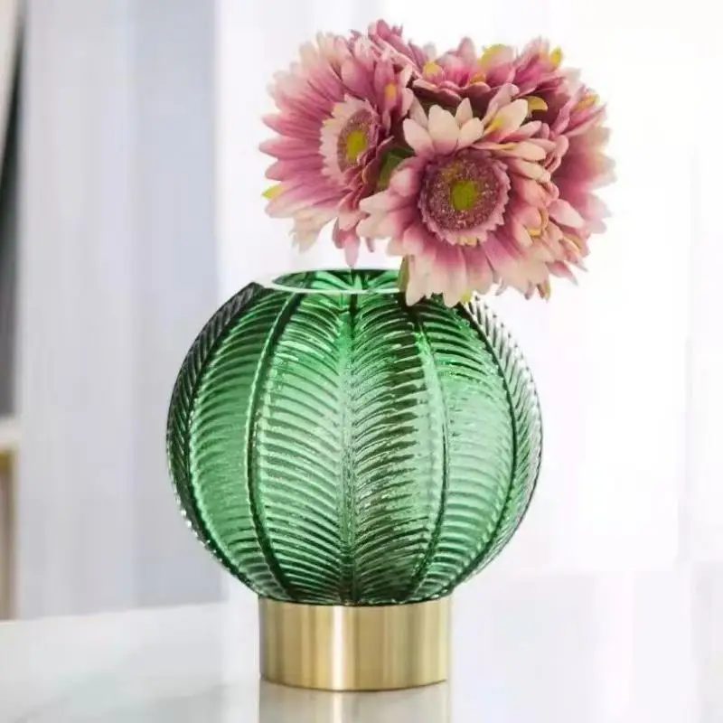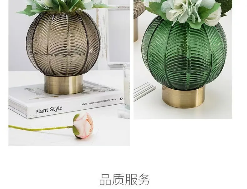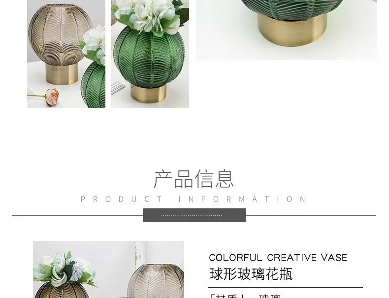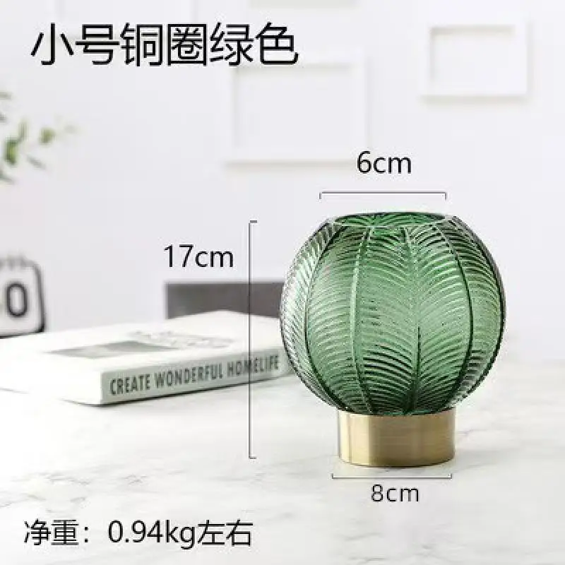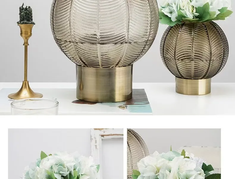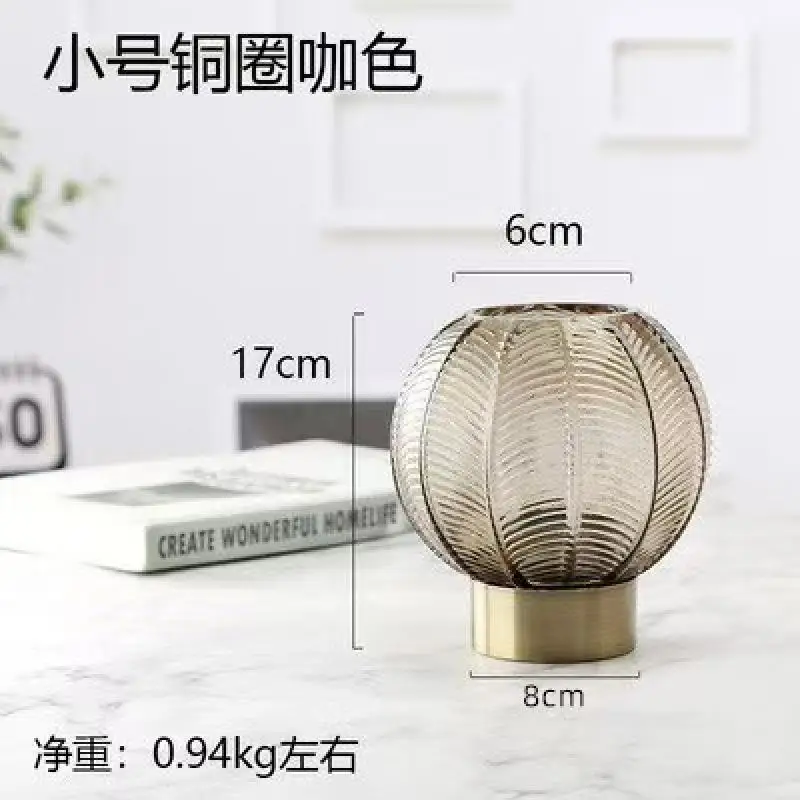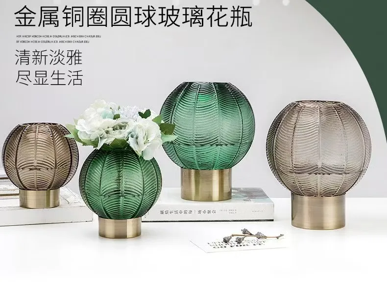 High-grade Copper Ring Glass Vase Round Spherical Hydroponic Flower Arrangement Decorative Creative Living Room Dining Table Exq