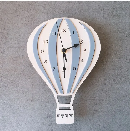热气球时钟卡通静音钟表墙面装饰北欧风家居软装挂钟
