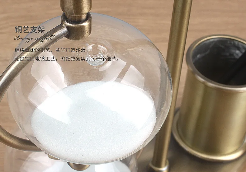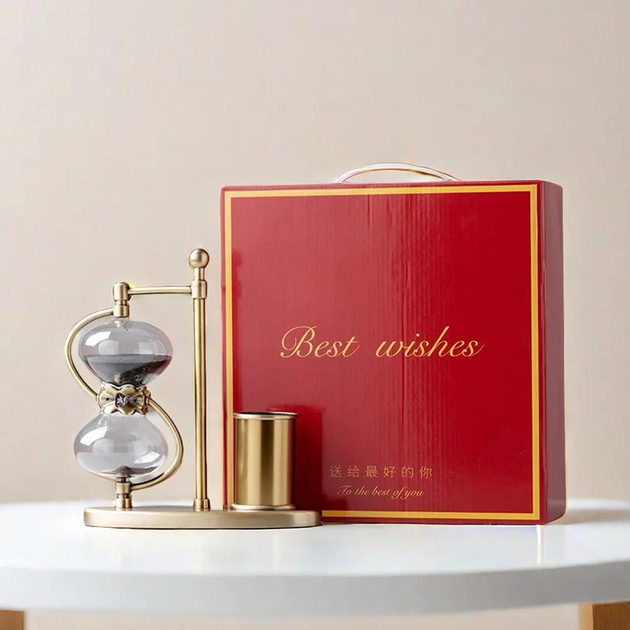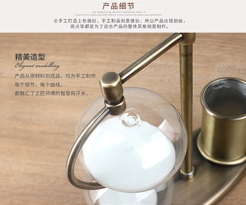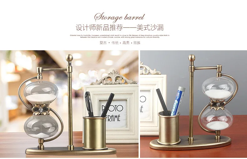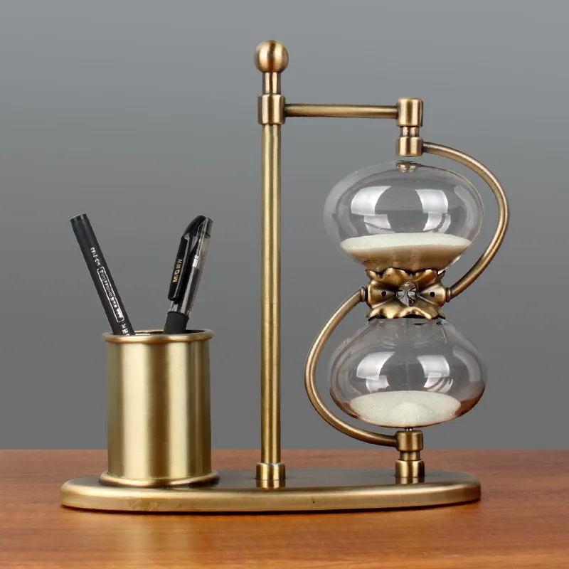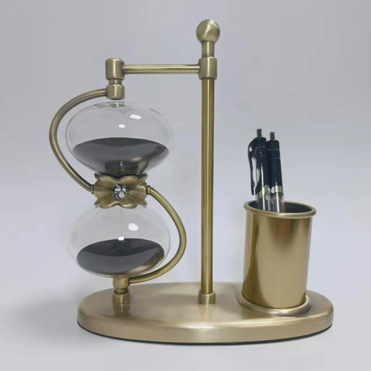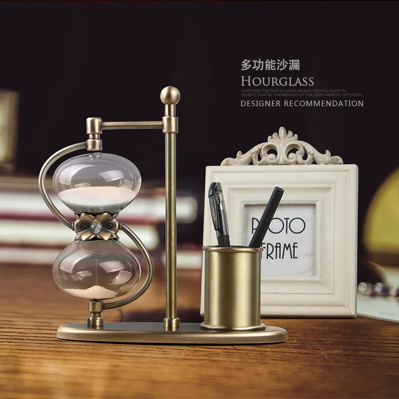 Metal Hourglass Timer Retro Office Desktop Pen Container Decoration Glass Time Hourglass Quicksand Gift Box High Sense