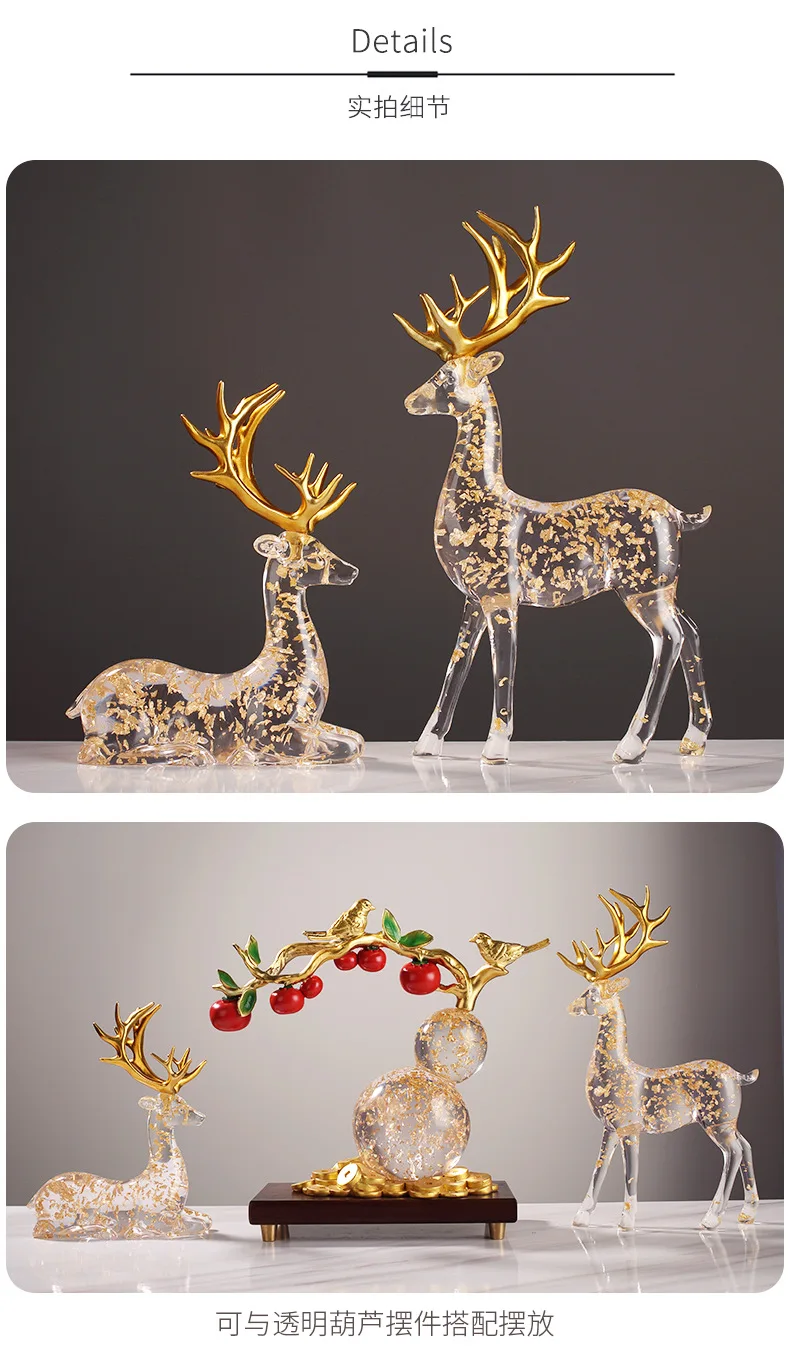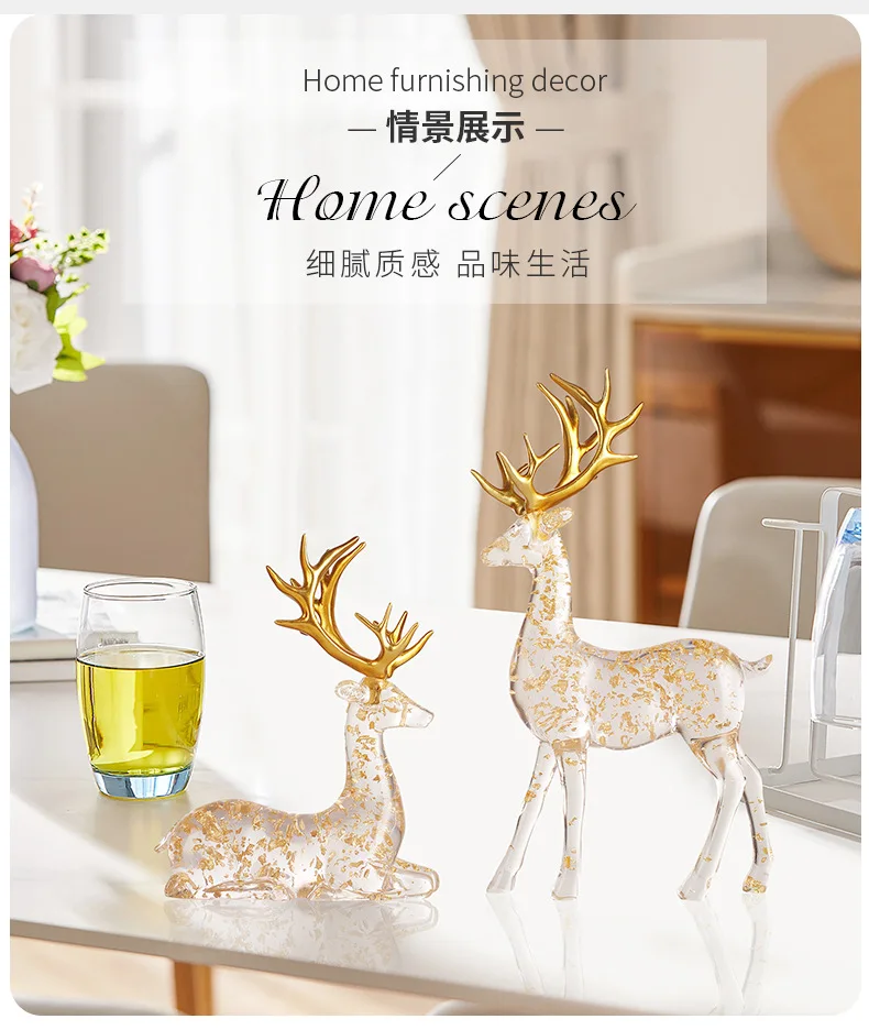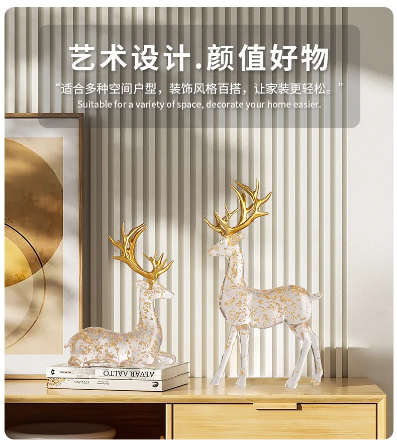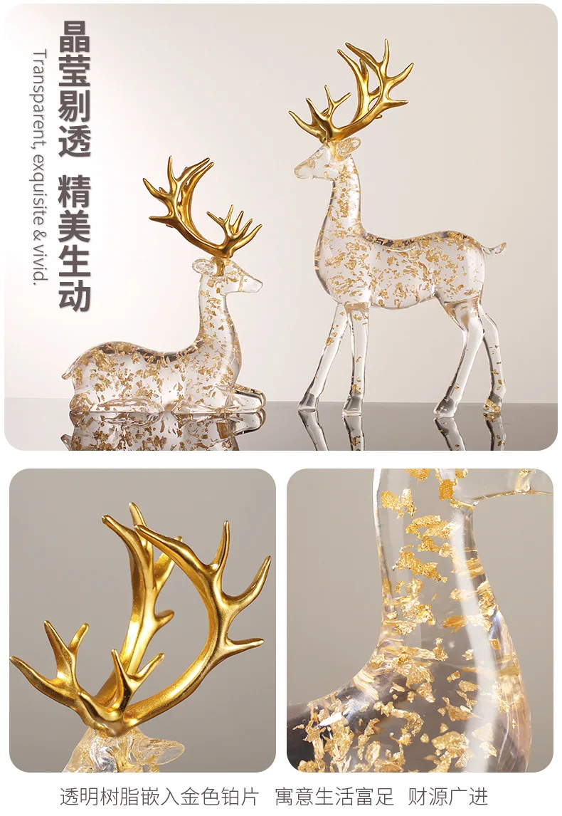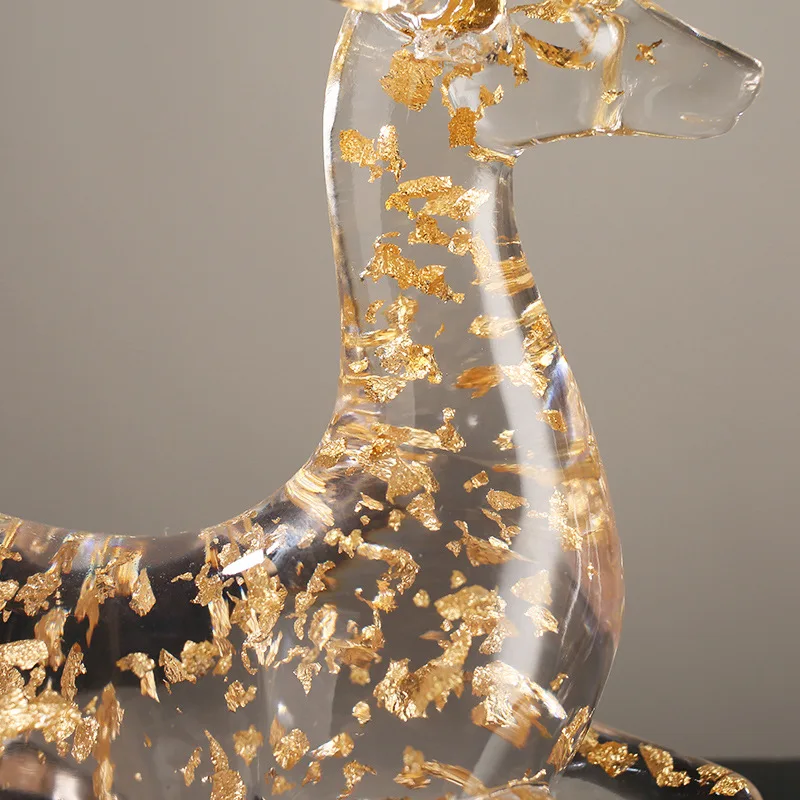 Modern Light Luxury Transparent Gold Foil Deer Ornaments, High-end Living Room Tv Cabinet, Wine Cabinet, Entrance Hall Home Deco