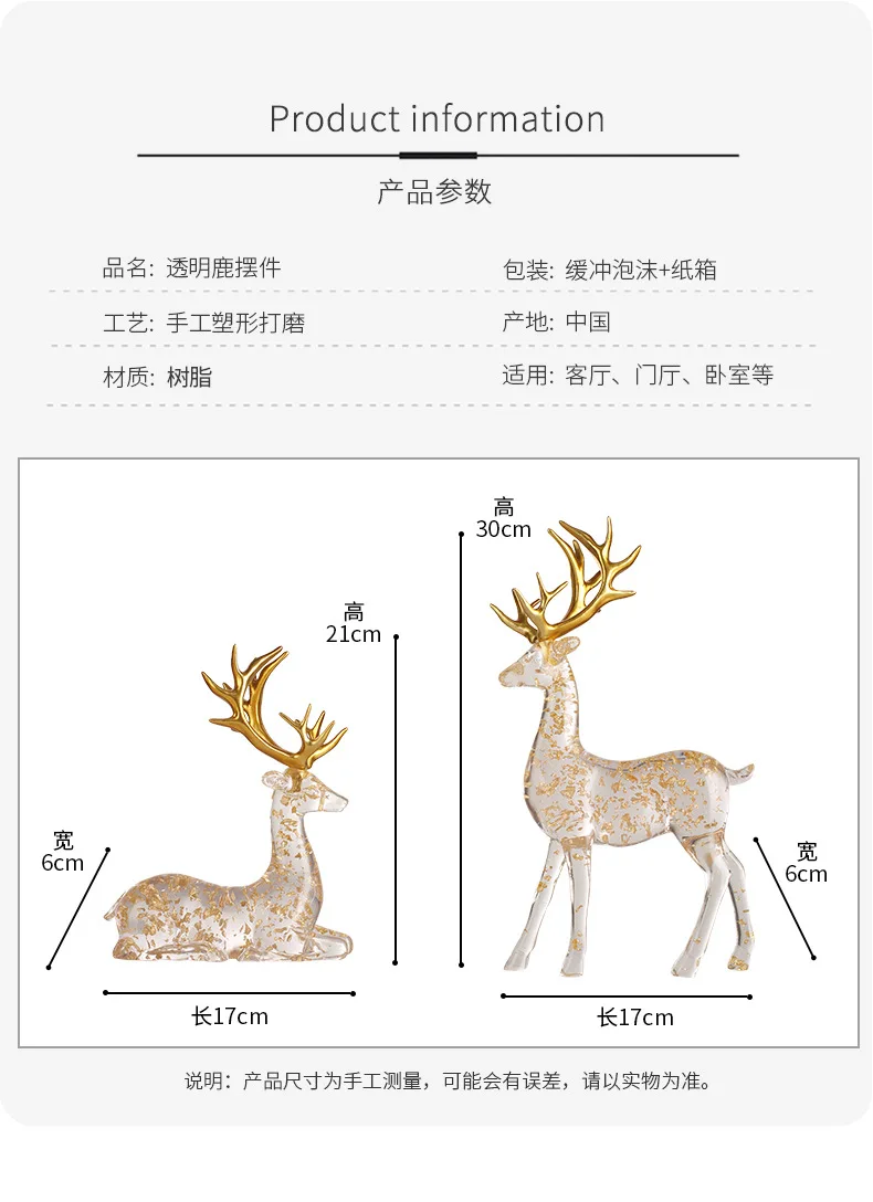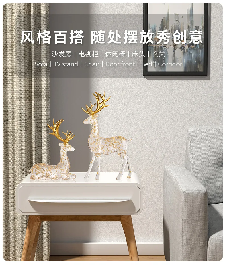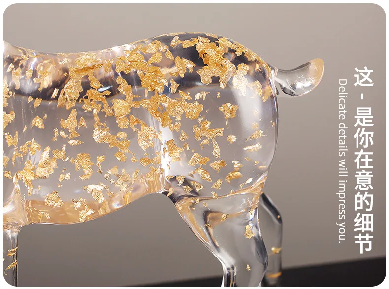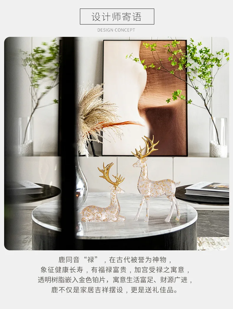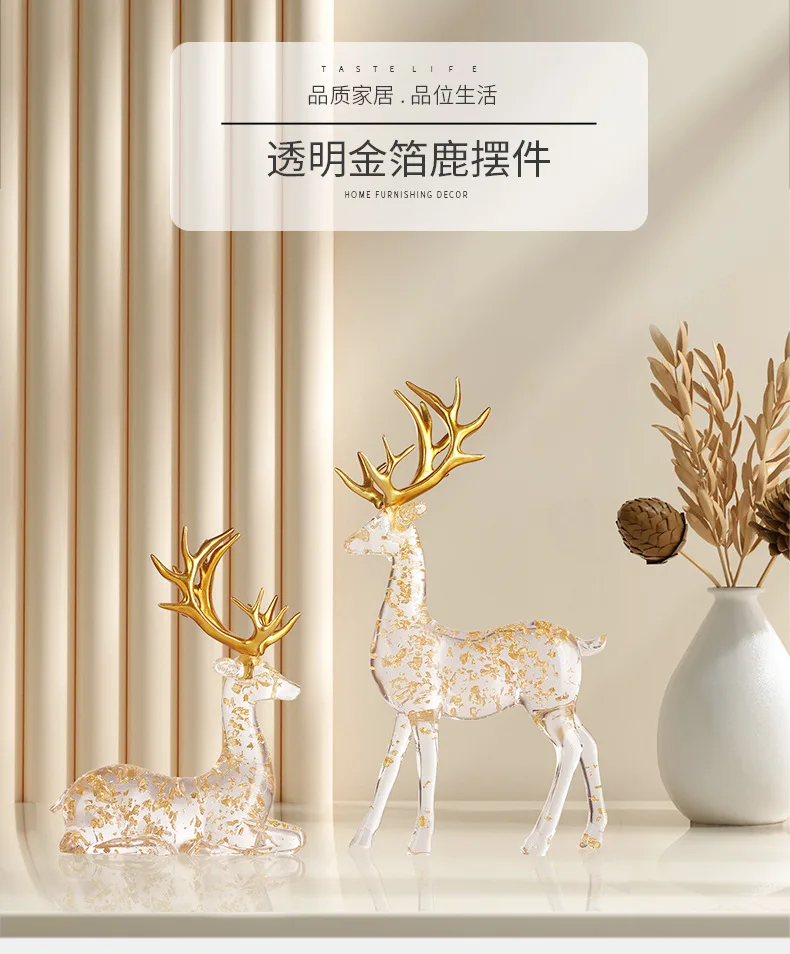 Modern Light Luxury Transparent Gold Foil Deer Ornaments, High-end Living Room Tv Cabinet, Wine Cabinet, Entrance Hall Home Deco