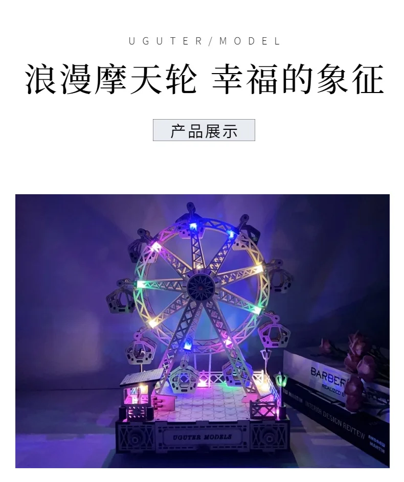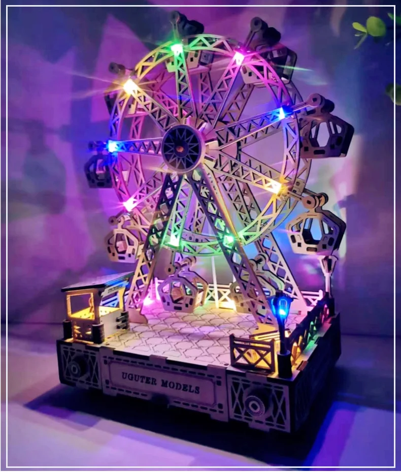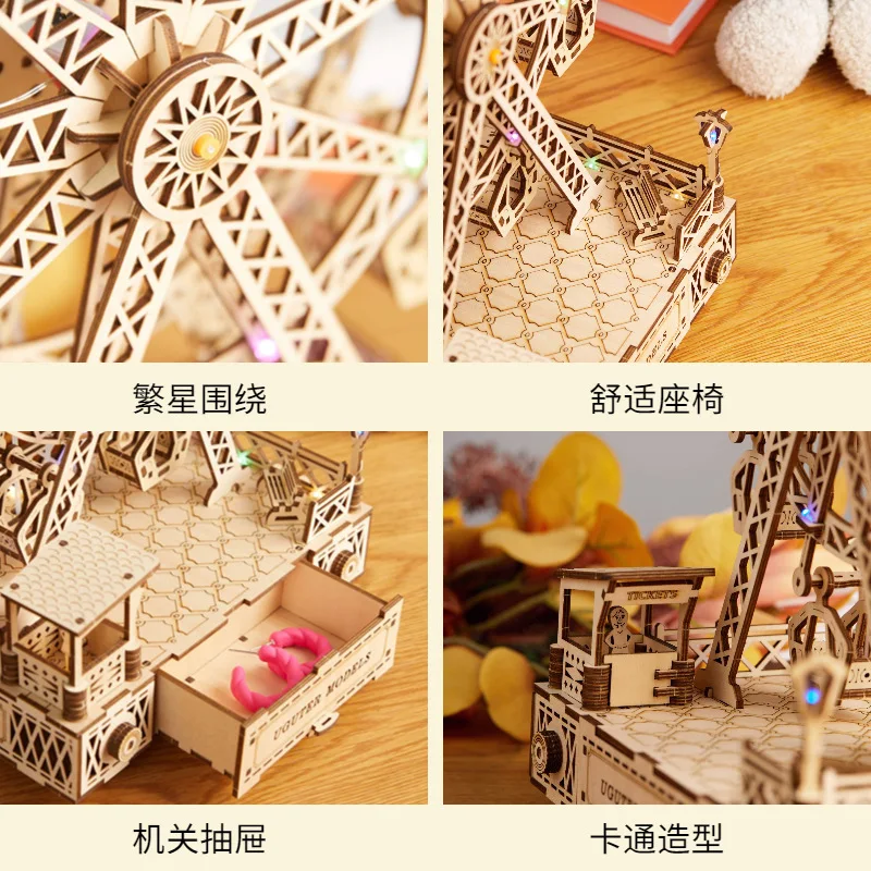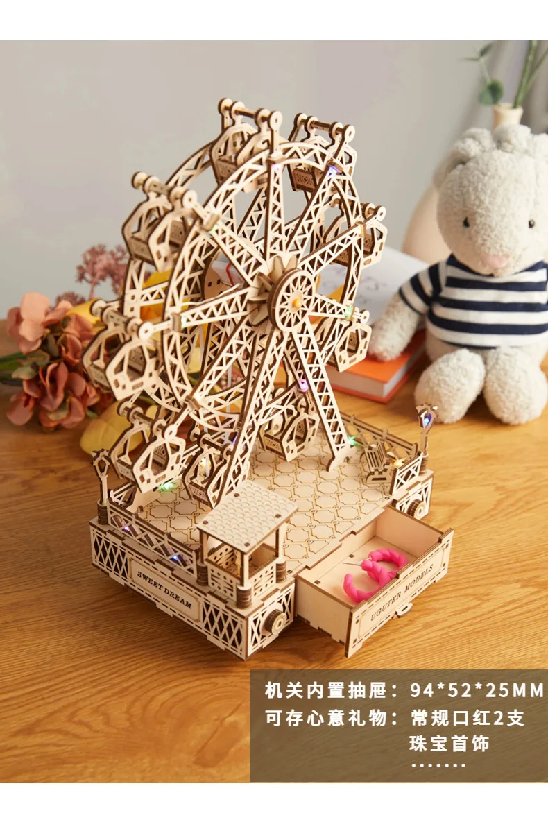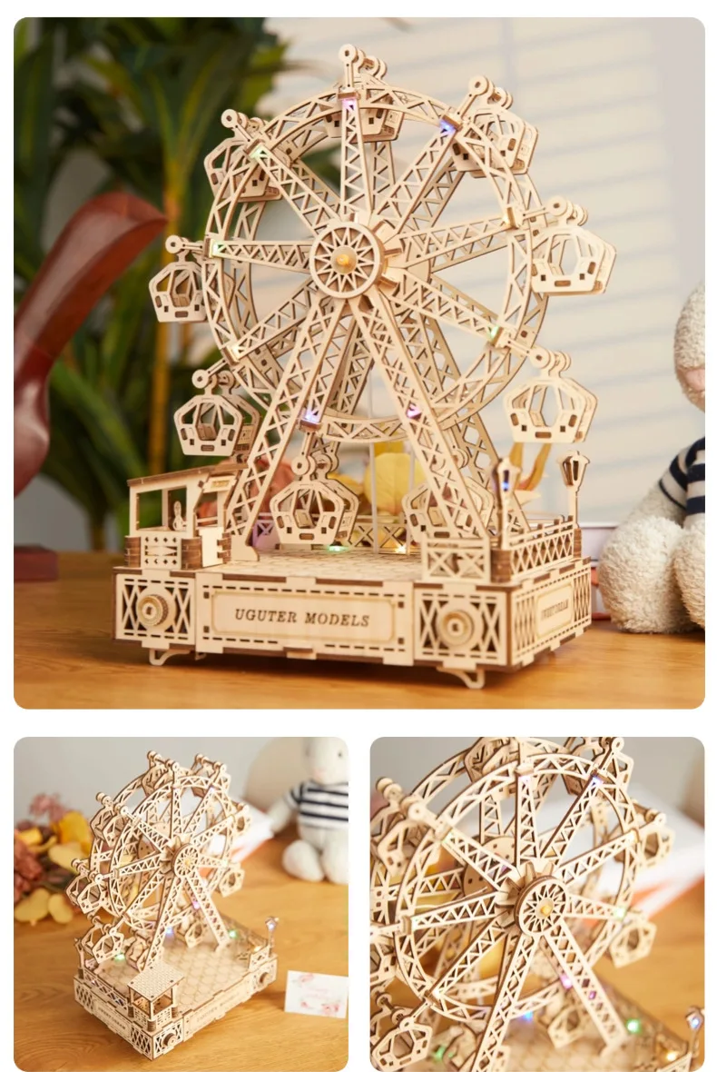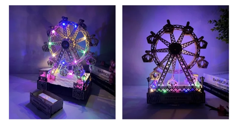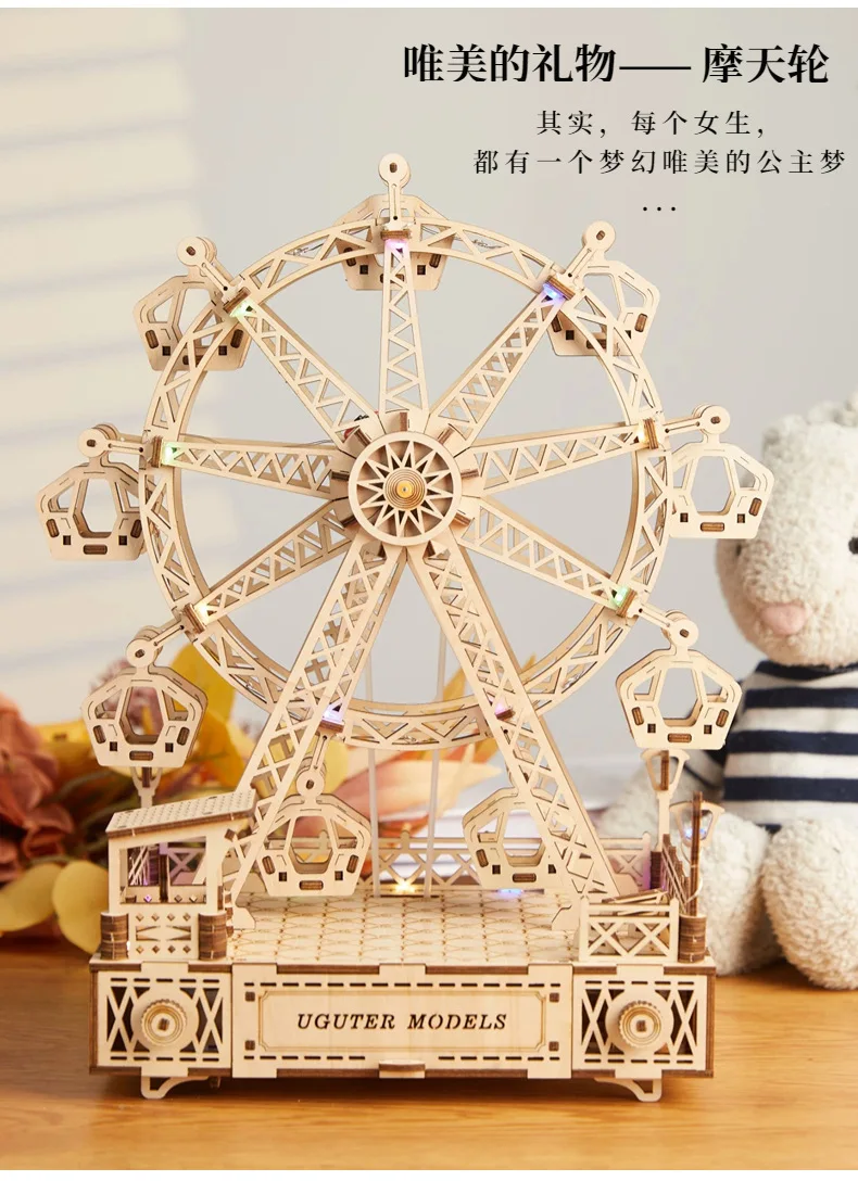 Music Ferris Wheel Music Box 3d Stereo Puzzle Wooden Puzzle Assembled Diy Creative Handmade Gift Installation Battery Color Ferr