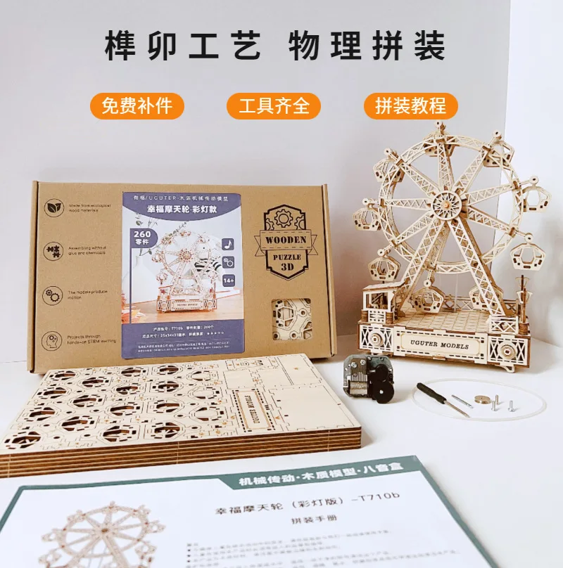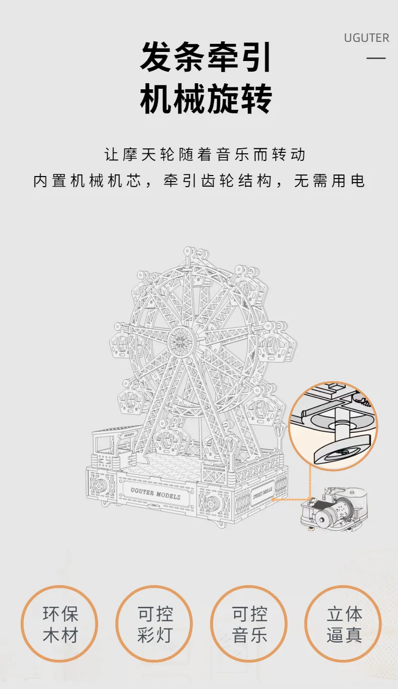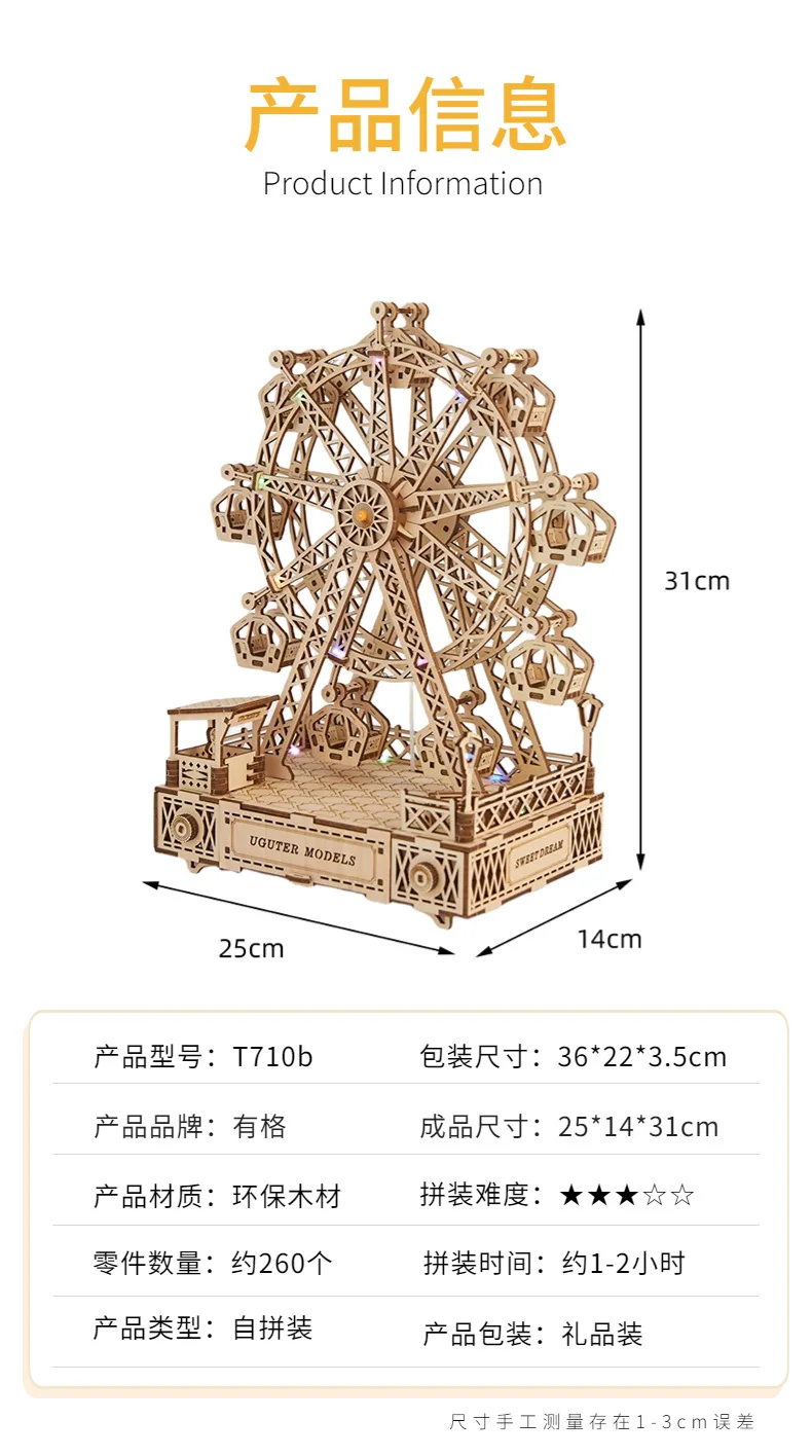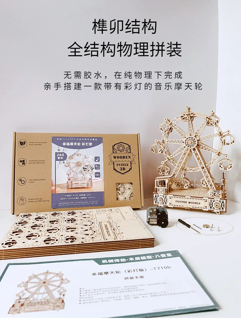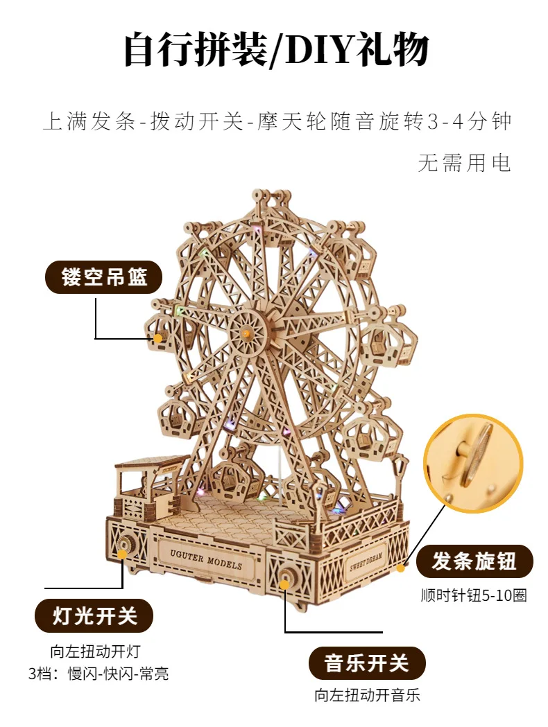 Music Ferris Wheel Music Box 3d Stereo Puzzle Wooden Puzzle Assembled Diy Creative Handmade Gift Installation Battery Color Ferr