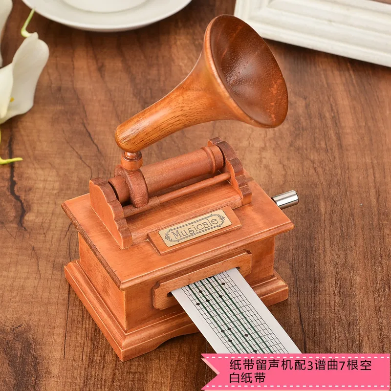Retro Diy Wooden Hand-cranked Paper Tape Music Box, 15-tone Gramophone Music Box, Composition Music Box, Birthday Gift