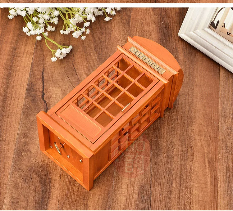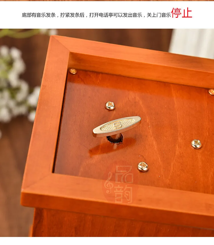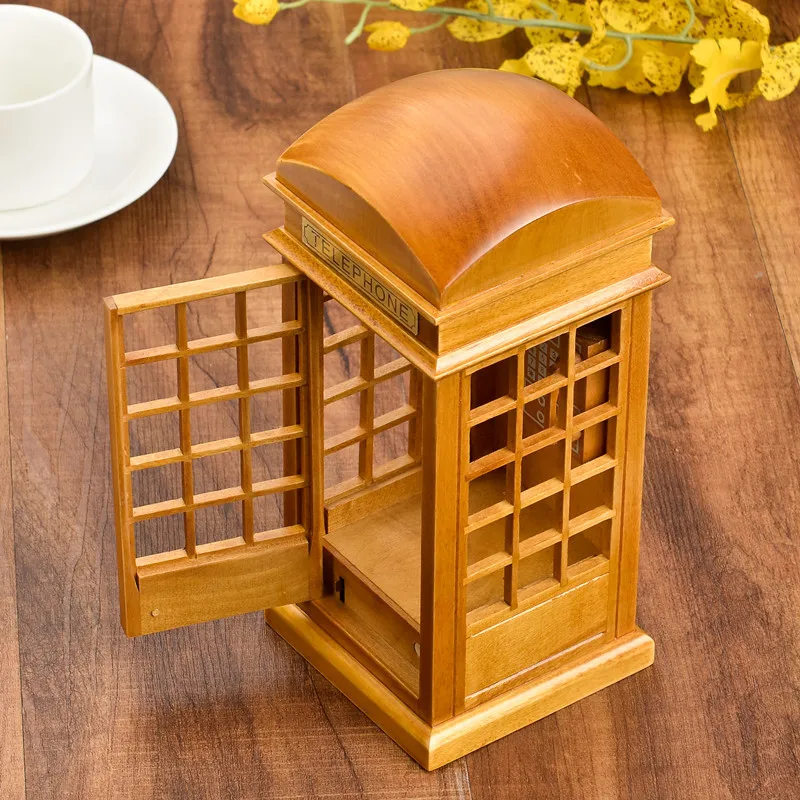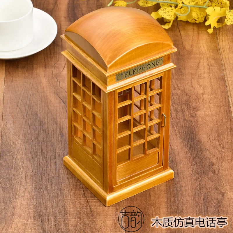 Retro Wooden Simulation Phone Booths, Music Boxes, Handicrafts Furniture And Ornaments Creative Wooden Festival Gifts 10x10x13cm