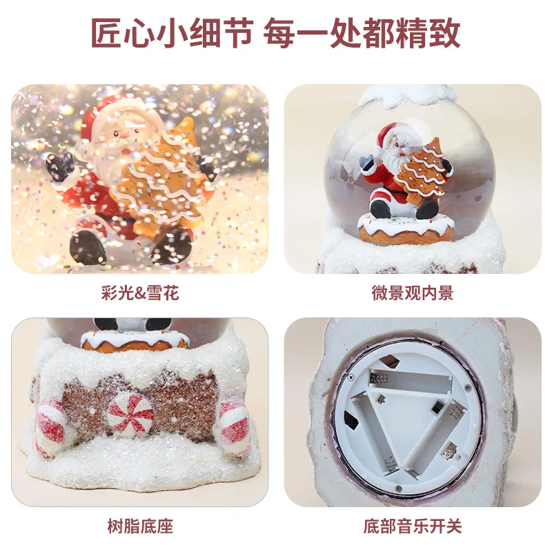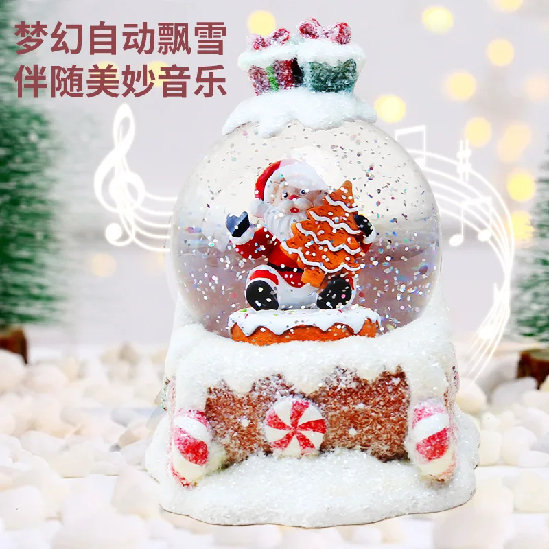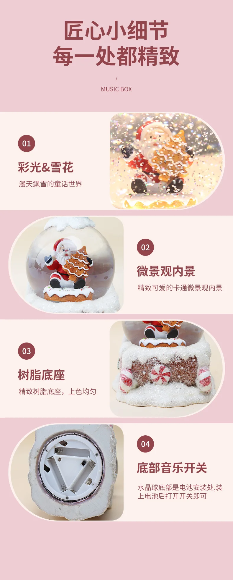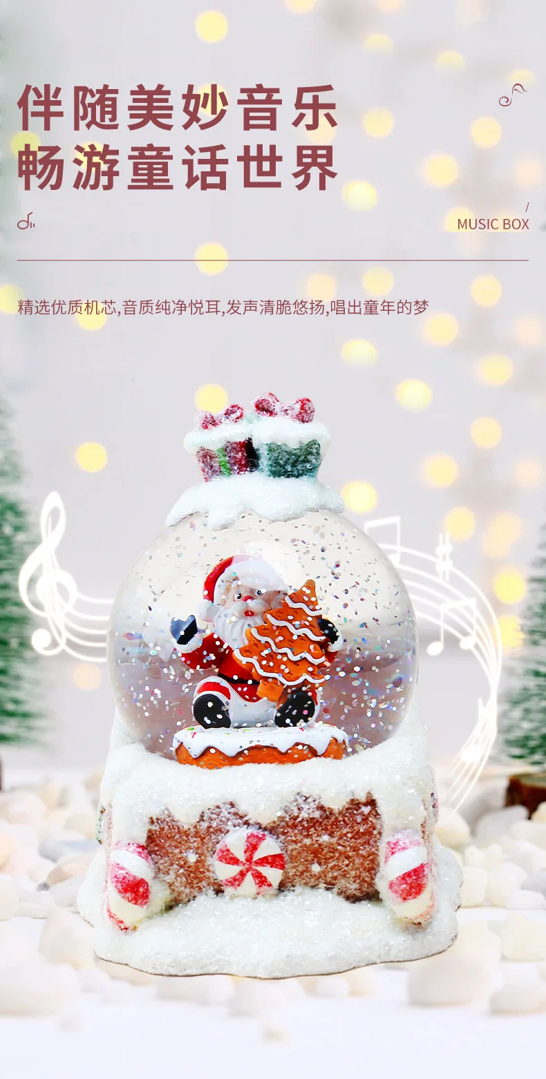 Santa Claus Music Box, Luminous Rotating Snowflake Crystal Ball Music Box, Christmas Birthday Gift