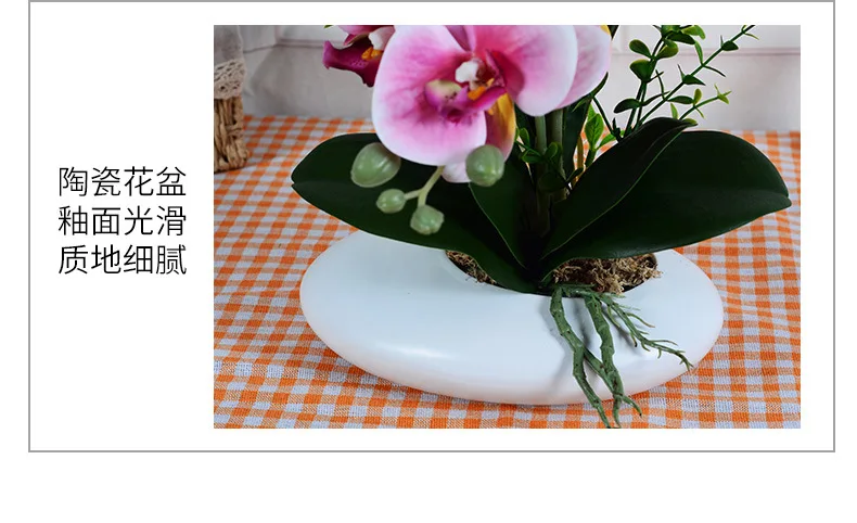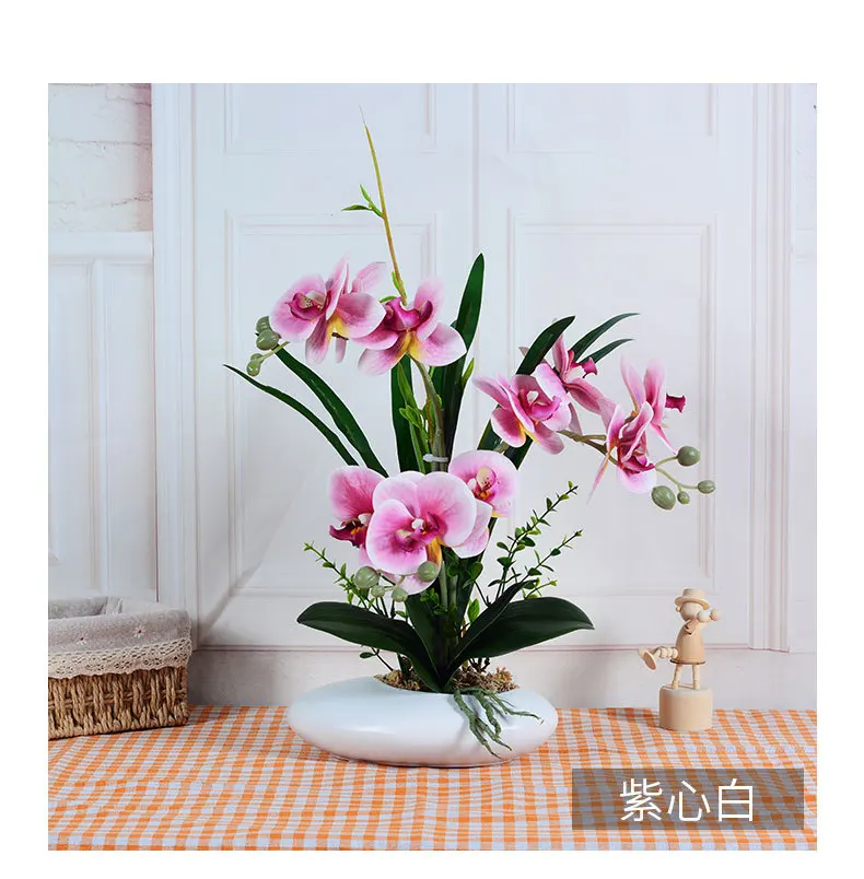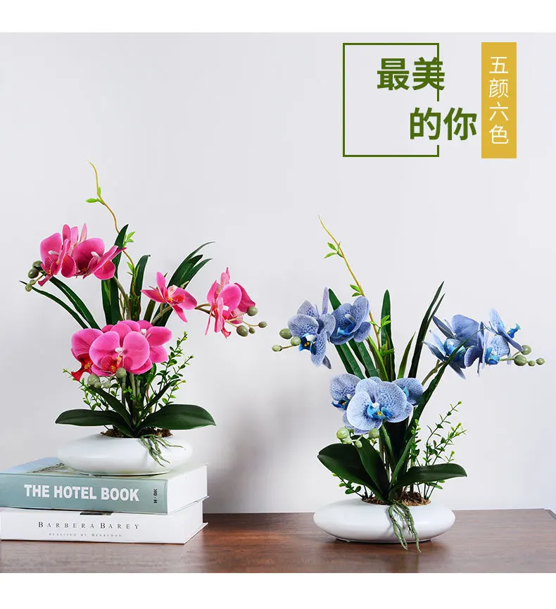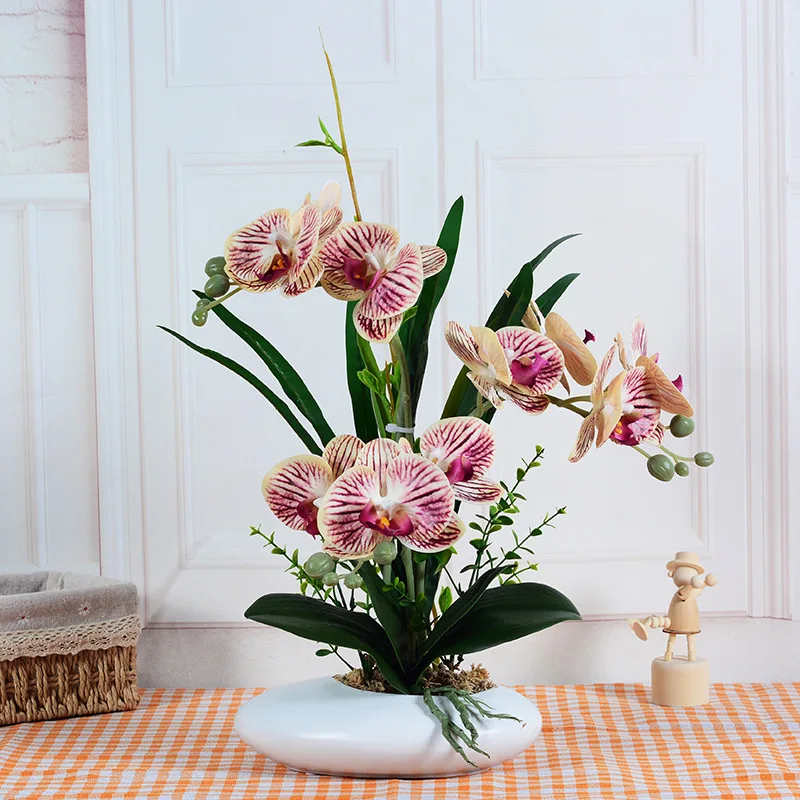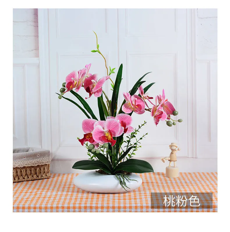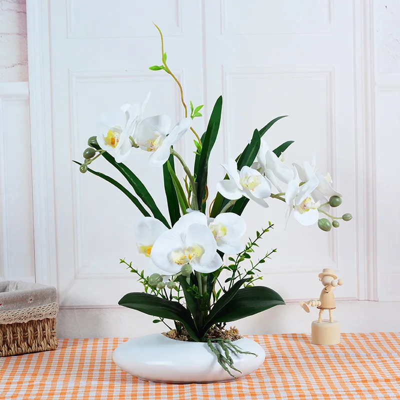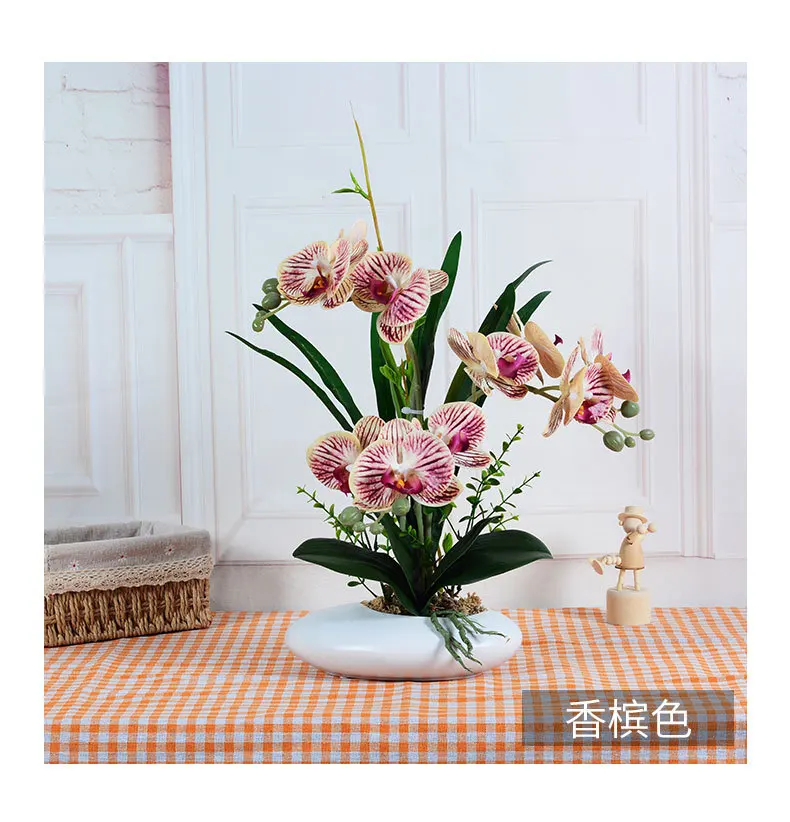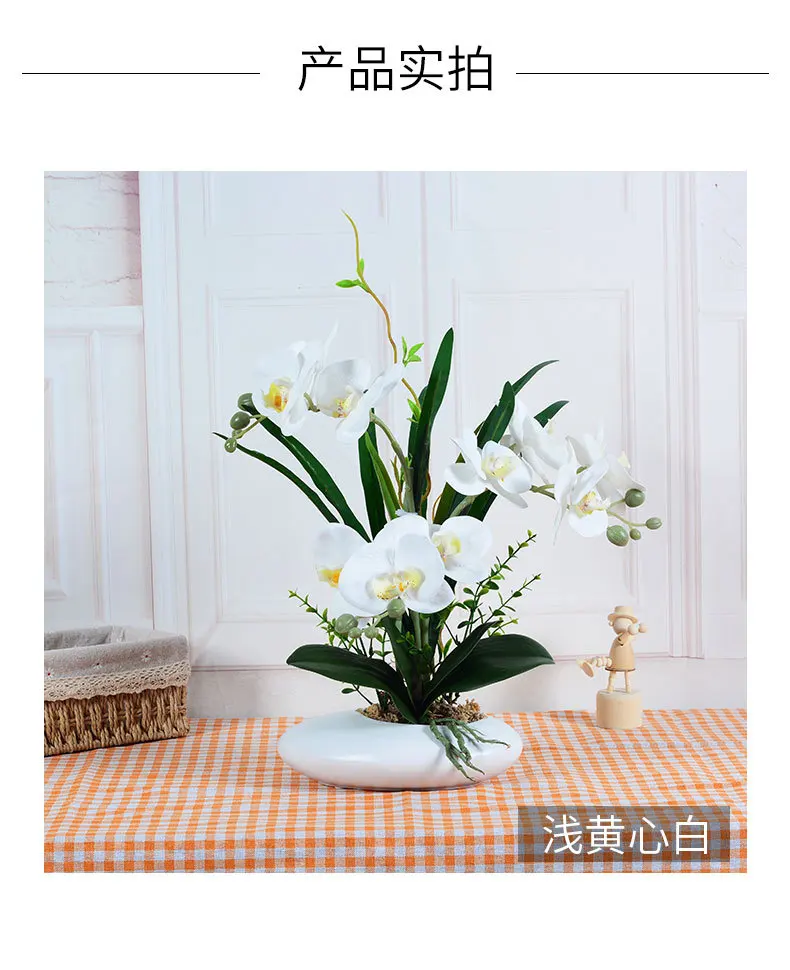 Simulation Of Phalaenopsis Oval Ceramic Potted Flowers Floral Handfeel Simulation Of Green Plants Bonsai Suit Ornaments Dining T