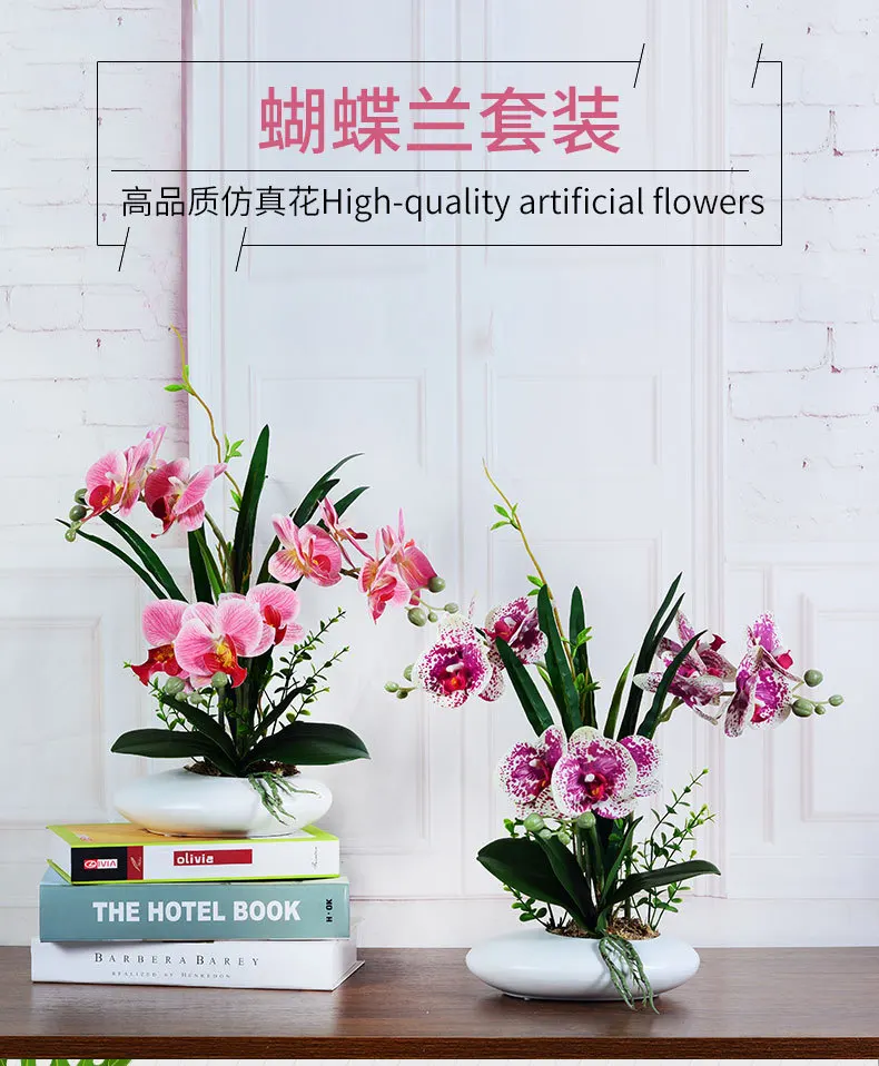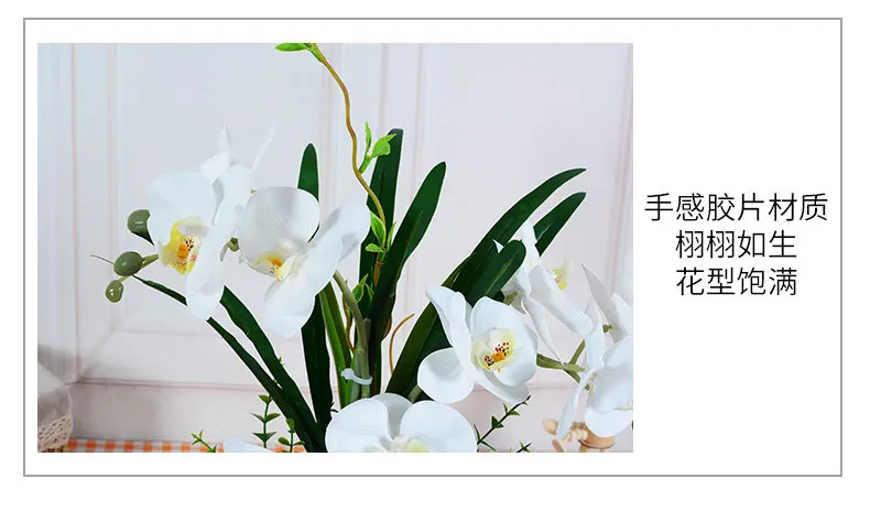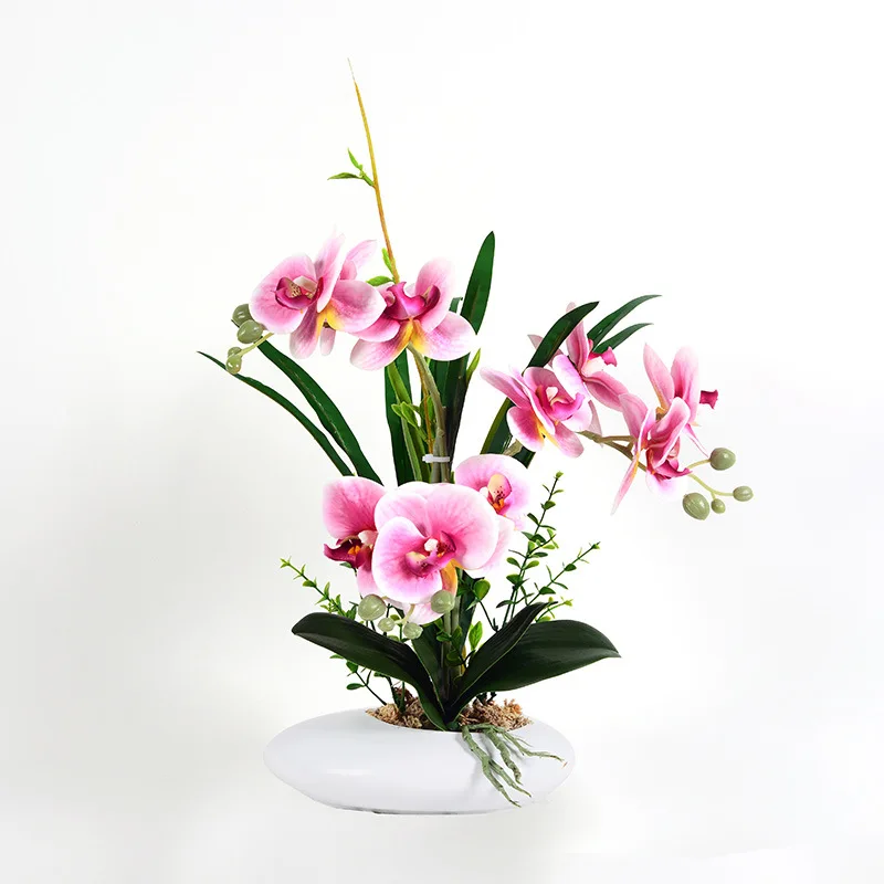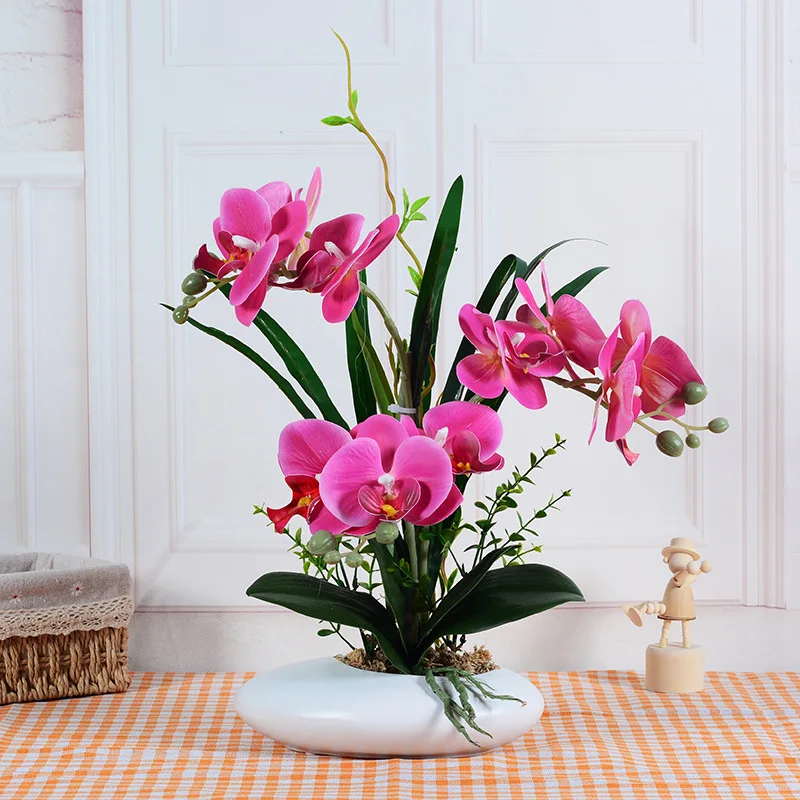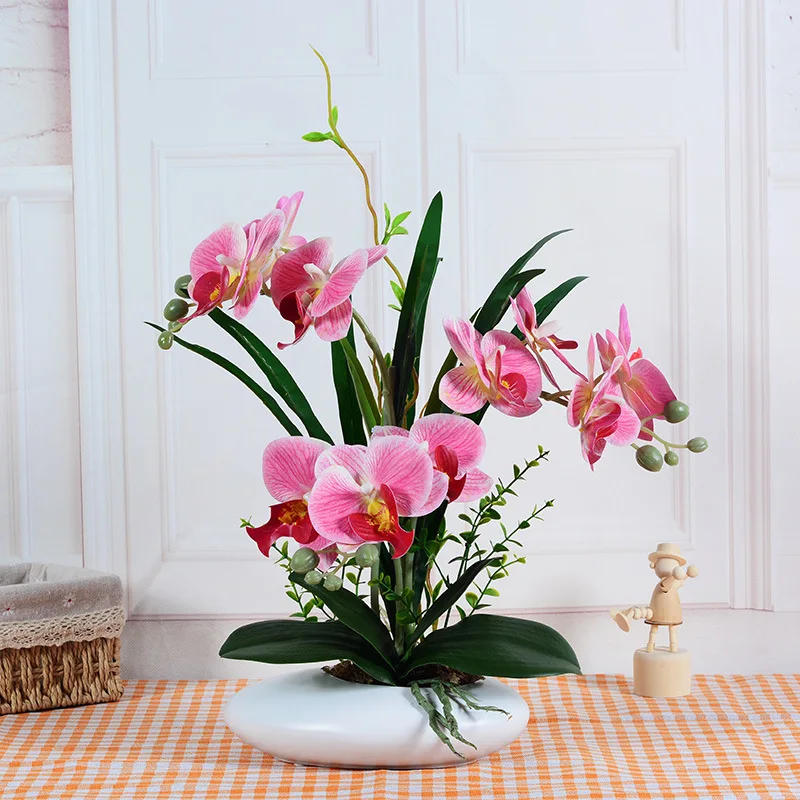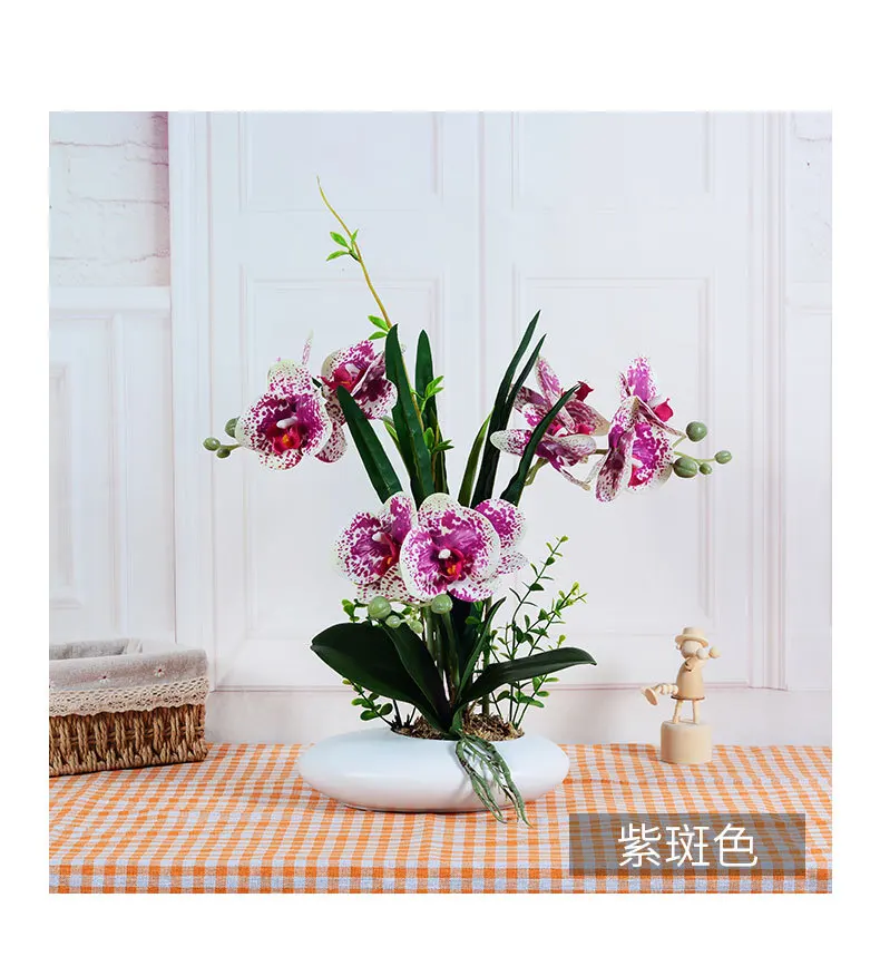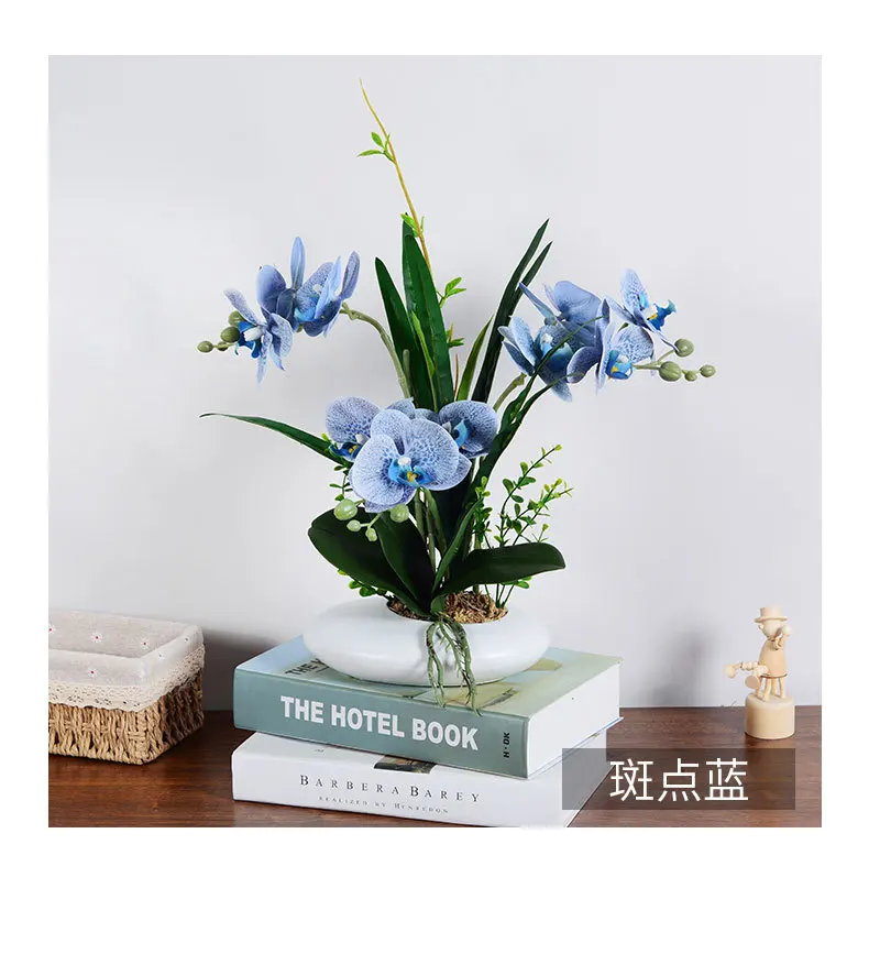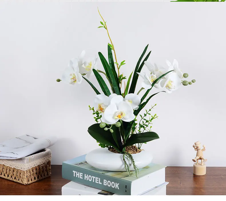 Simulation Of Phalaenopsis Oval Ceramic Potted Flowers Floral Handfeel Simulation Of Green Plants Bonsai Suit Ornaments Dining T