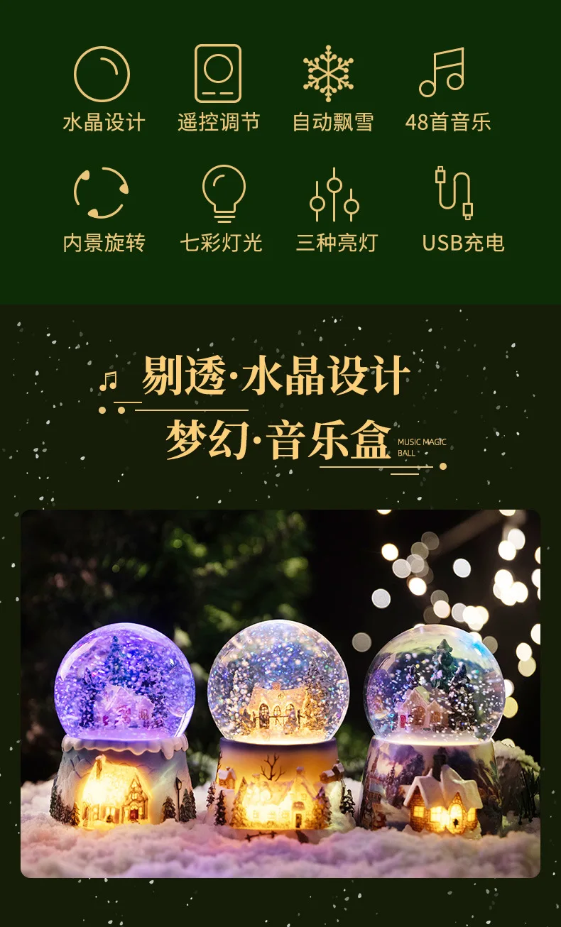 Sky City Crystal Ball Christmas And Children’s Day Gifts: Glowing Music Box, Music Box, Automatic Snowfall Figurine
