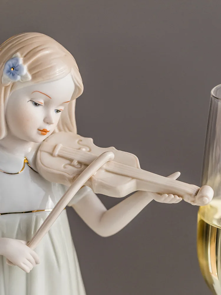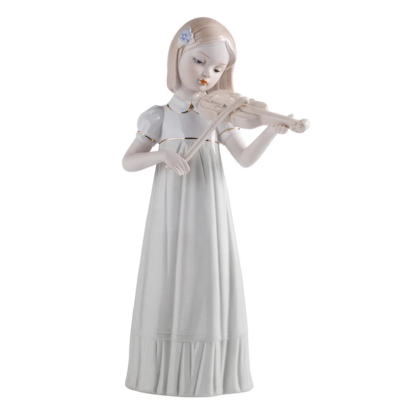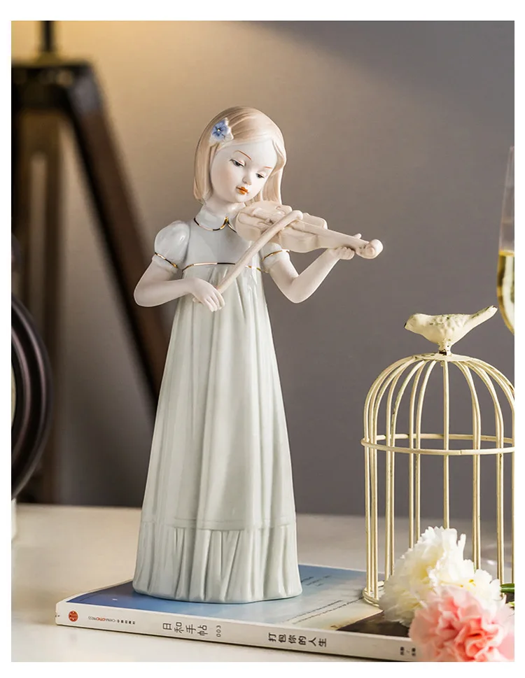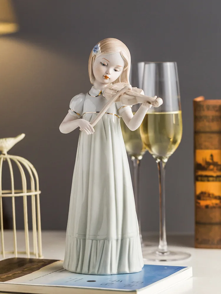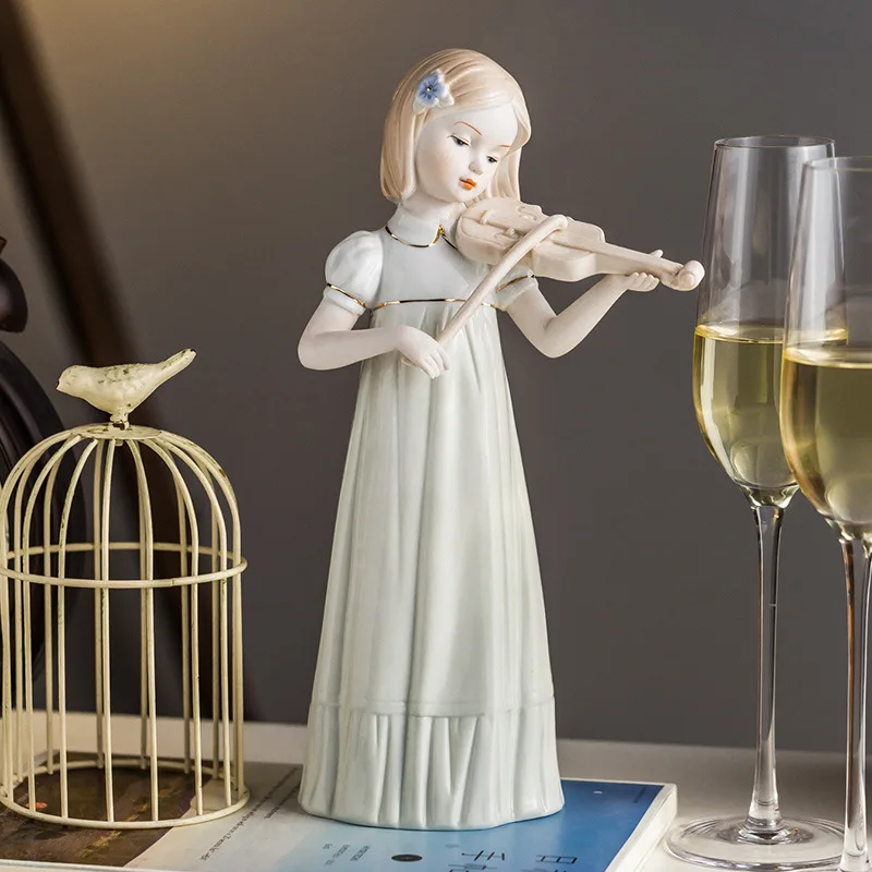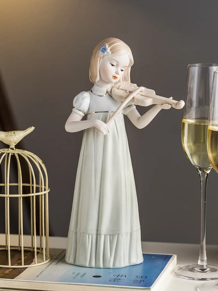 Violin Playing Girl Ceramic Art Sculpture Ornaments Wine Cabinet Hallway Decoration Crafts Children’s Room Ornaments Gifts