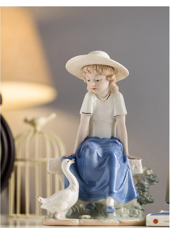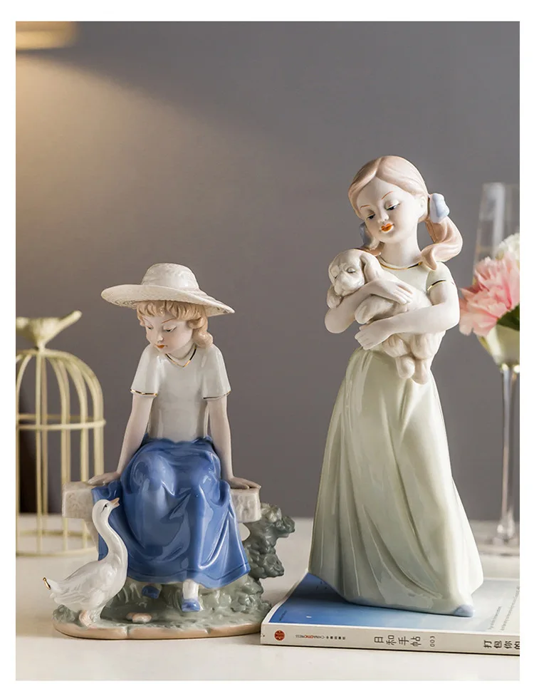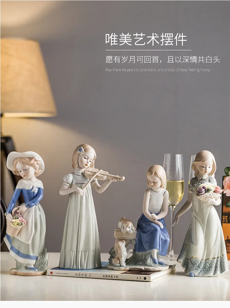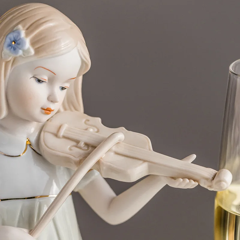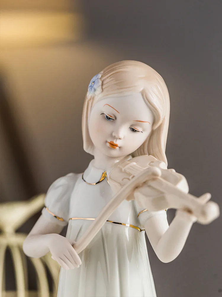 Violin Playing Girl Ceramic Art Sculpture Ornaments Wine Cabinet Hallway Decoration Crafts Children’s Room Ornaments Gifts