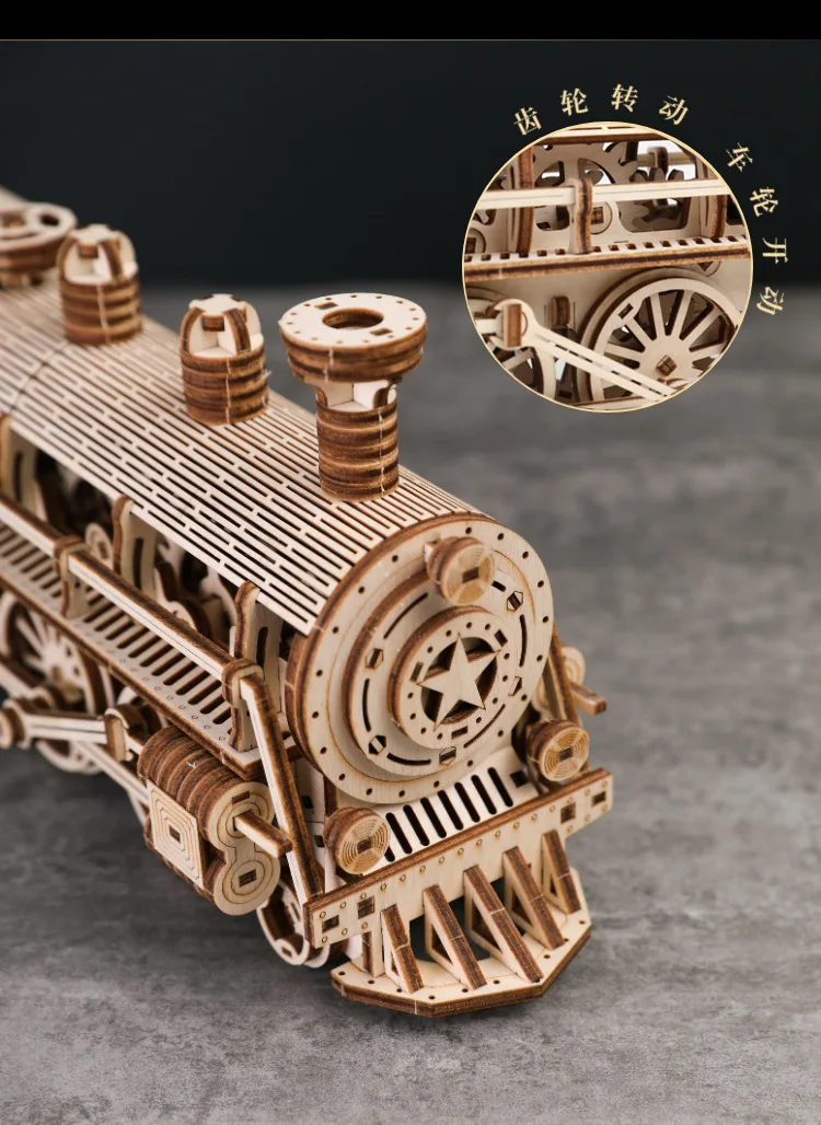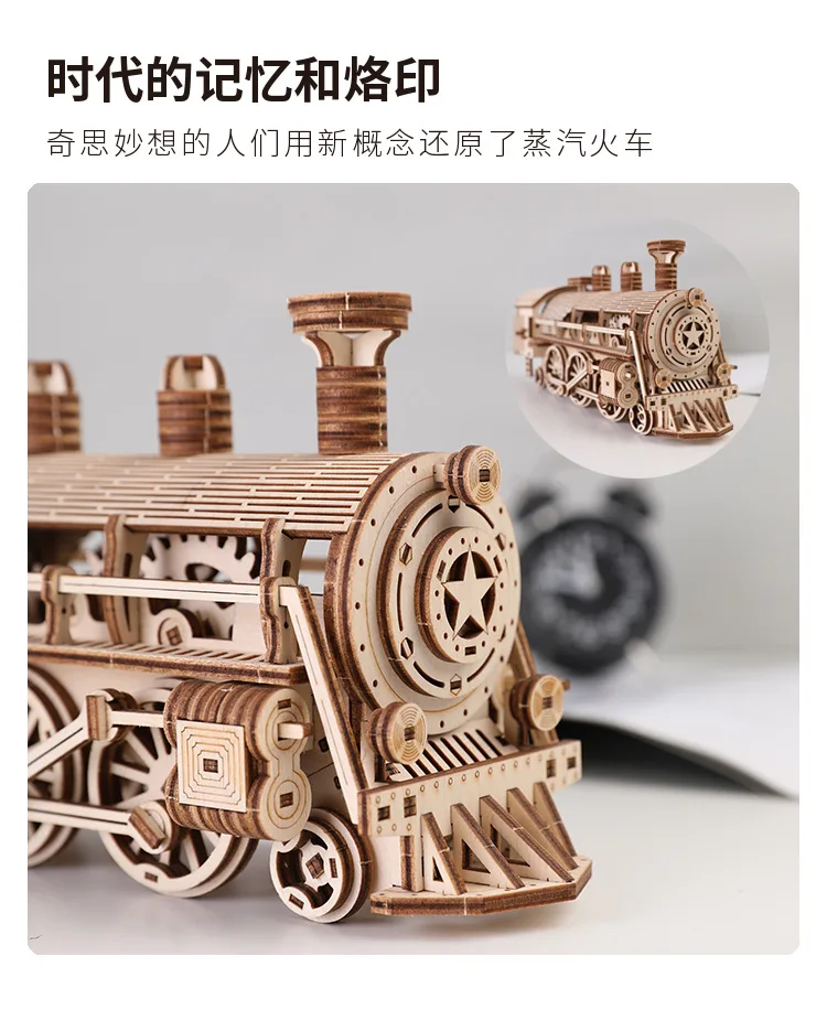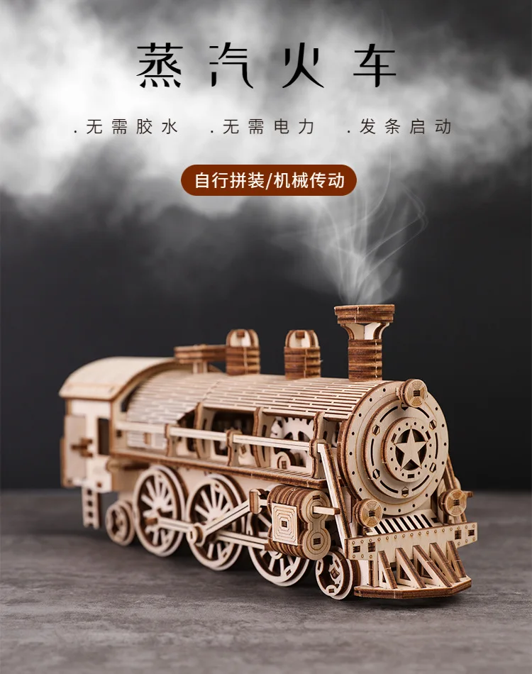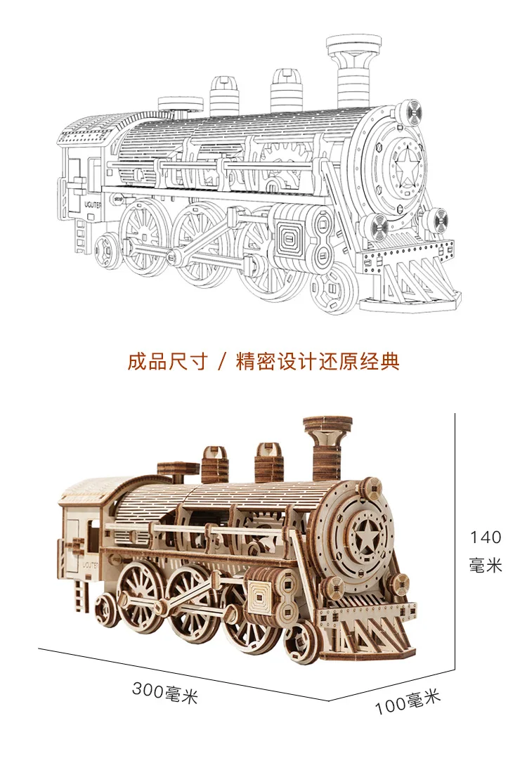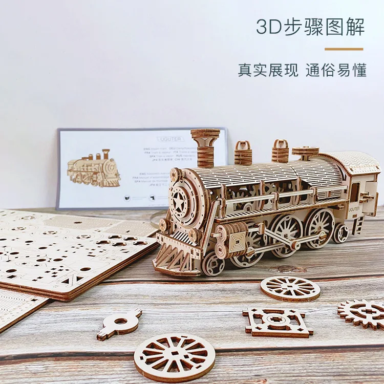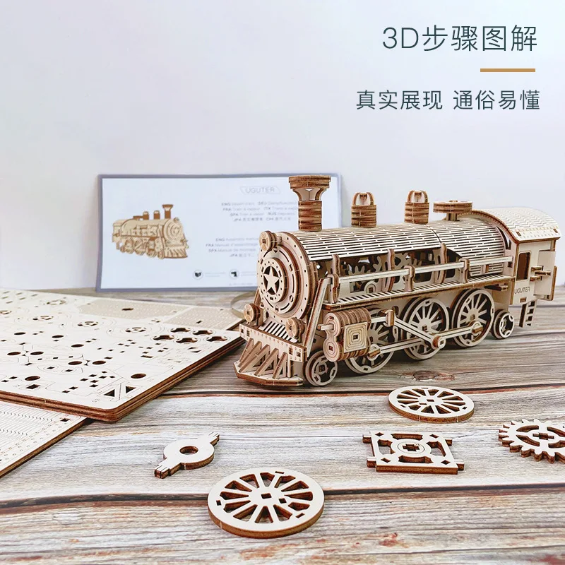 Wooden Steam Train Model Diy3d Stereo Puzzle Difficulty Adult Assembled Mechanical Dynamic Model Decompression Handmade Gift