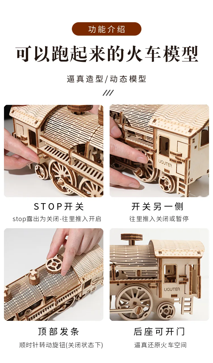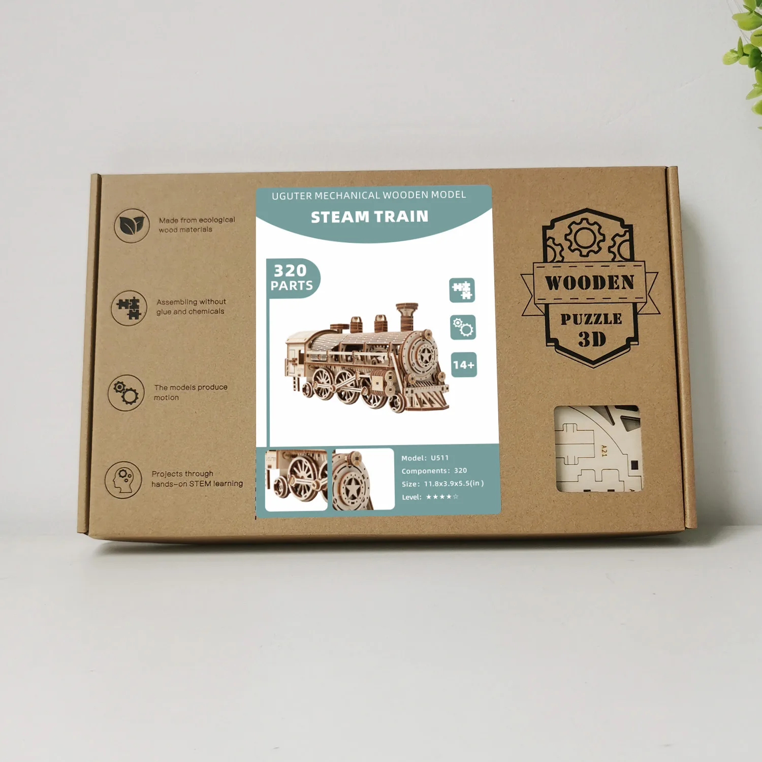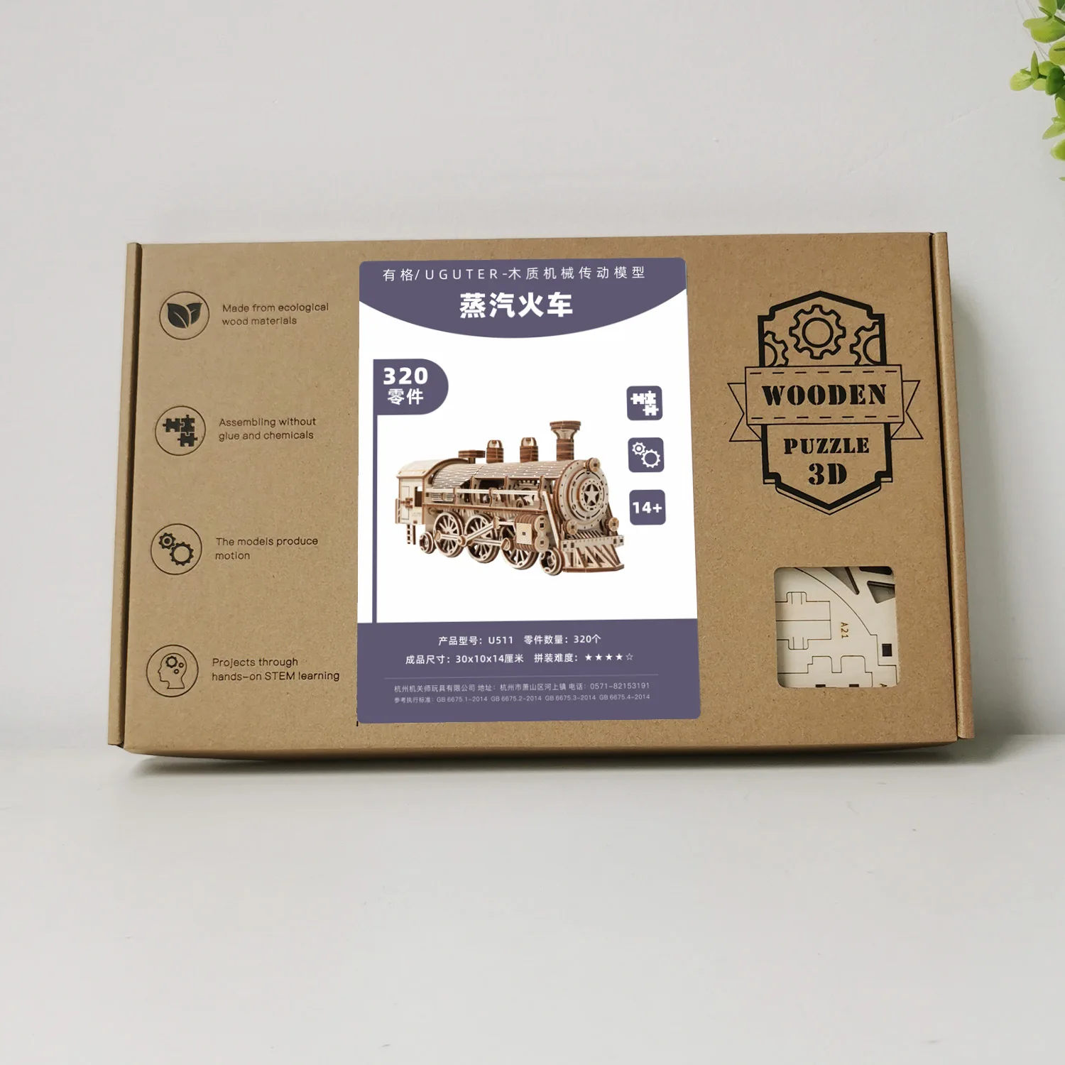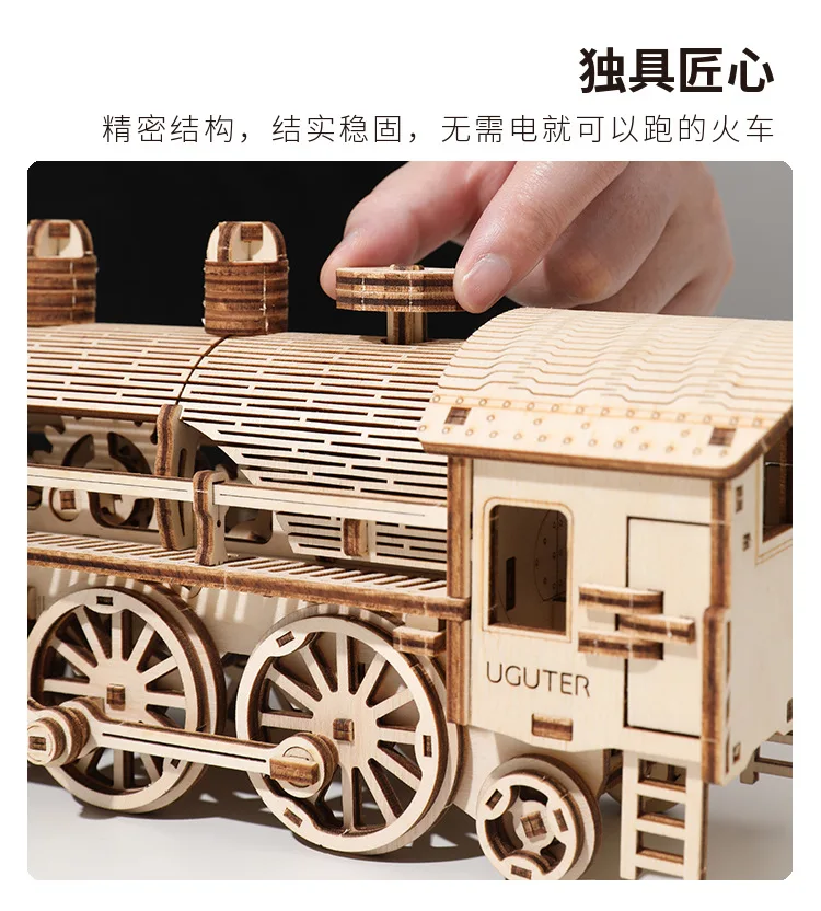 Wooden Steam Train Model Diy3d Stereo Puzzle Difficulty Adult Assembled Mechanical Dynamic Model Decompression Handmade Gift
